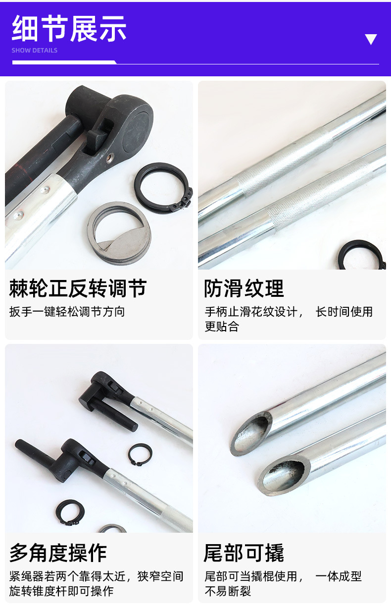 다기능 트럭 로프 텐셔너 래칫 렌치 로프 트위스트 도구 360 도 회전 노동 절약 렌치 크랩 바 완전한 세트