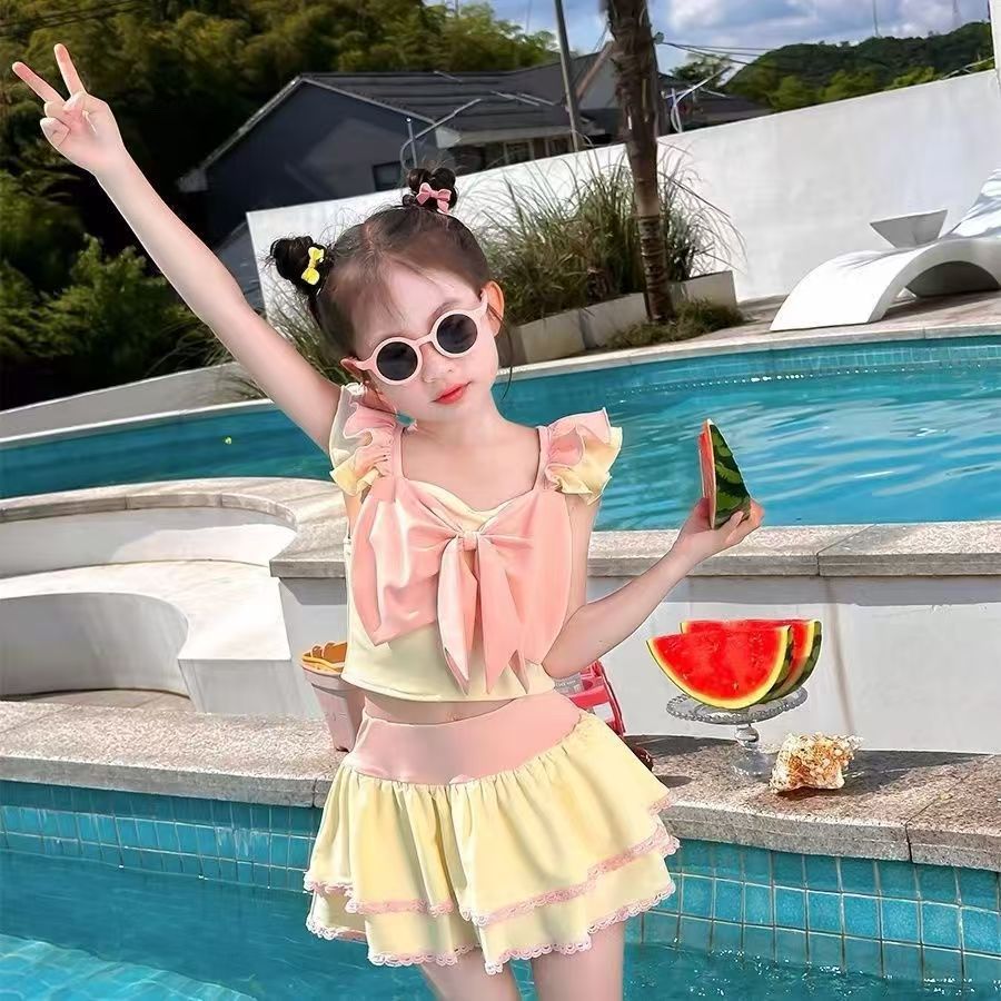 소녀 반팔 쪼개진 수영 원피스 신속 건조 3 차원 활 어린이 레이스 수영복 여아 보수 수영복