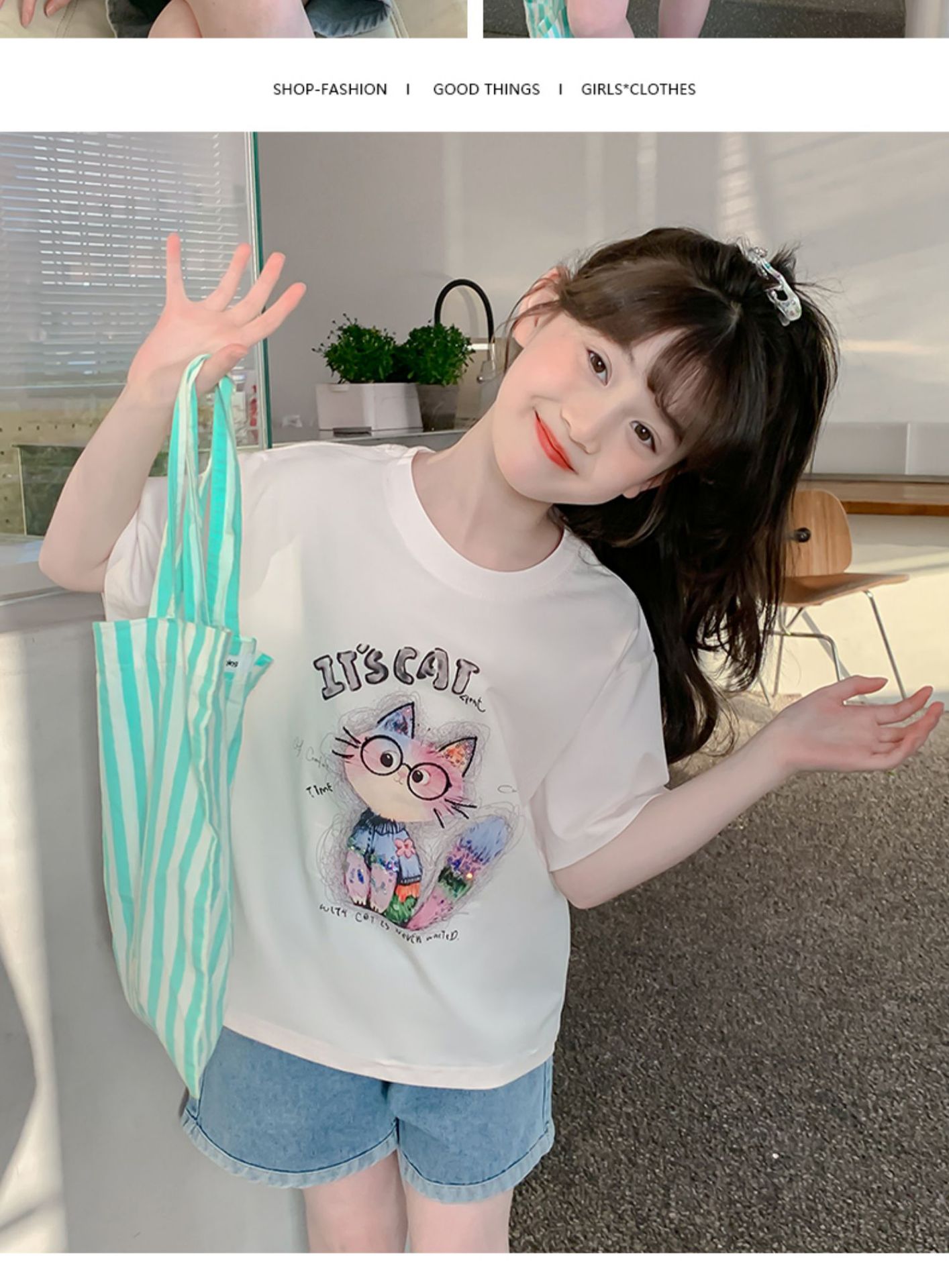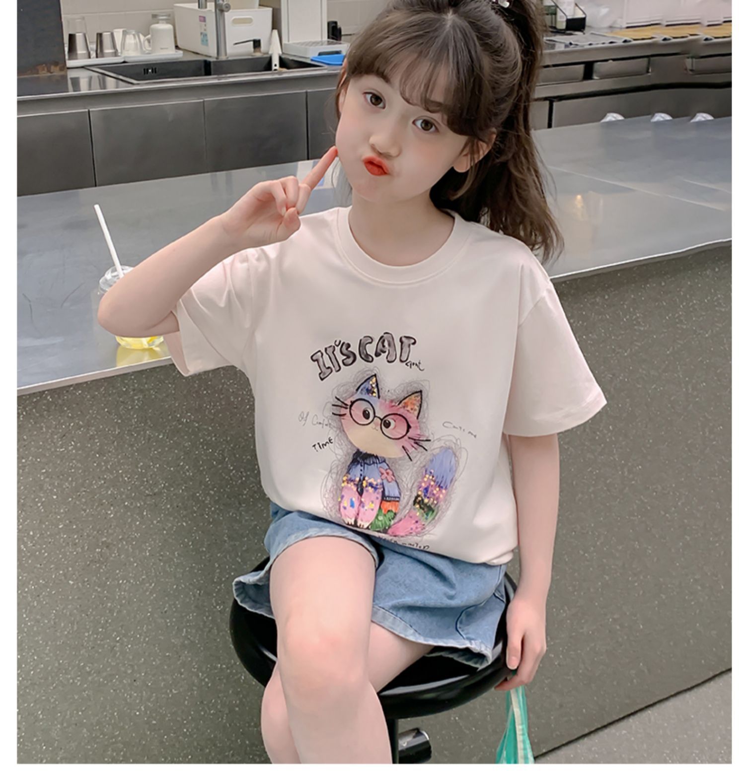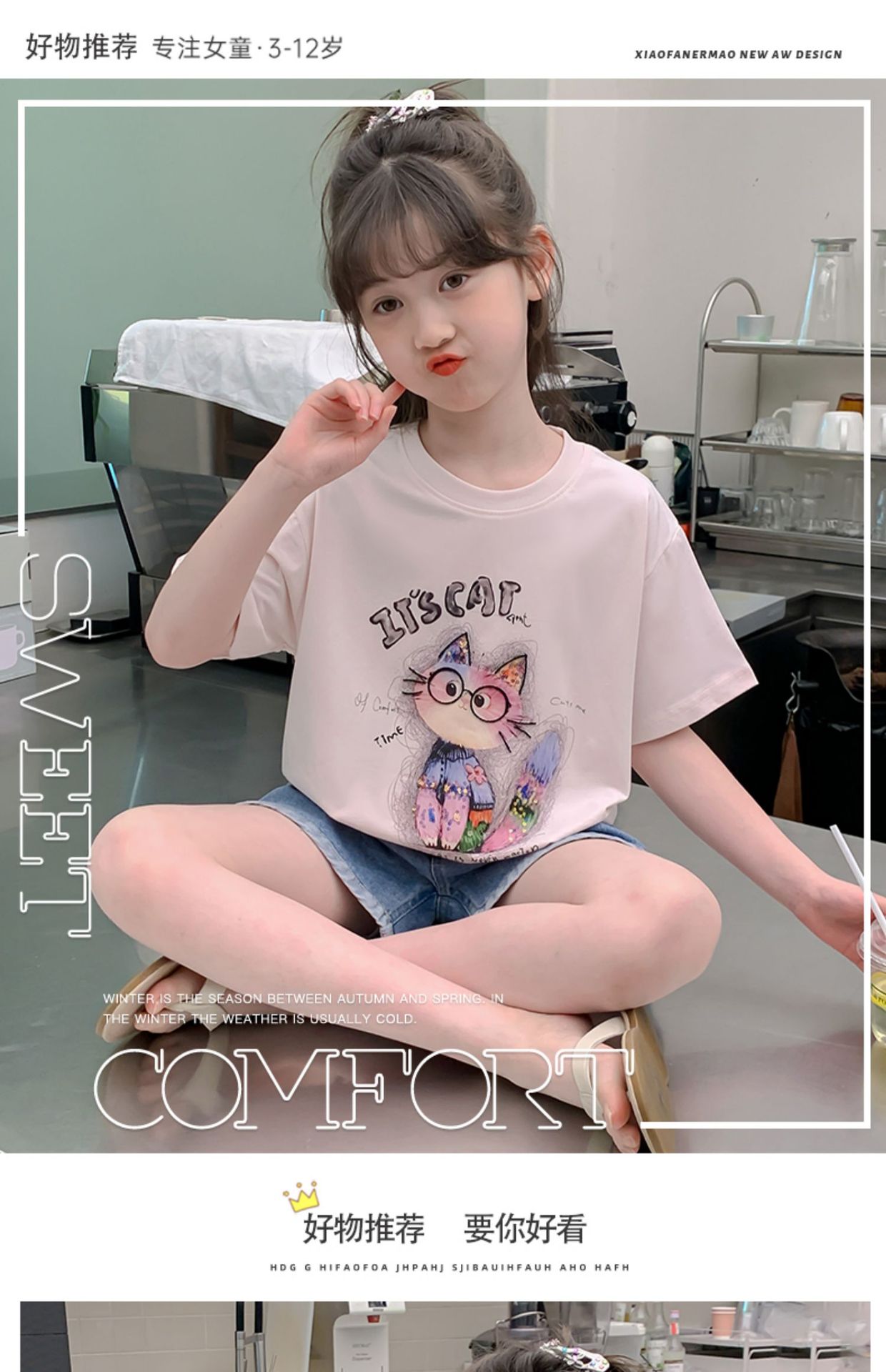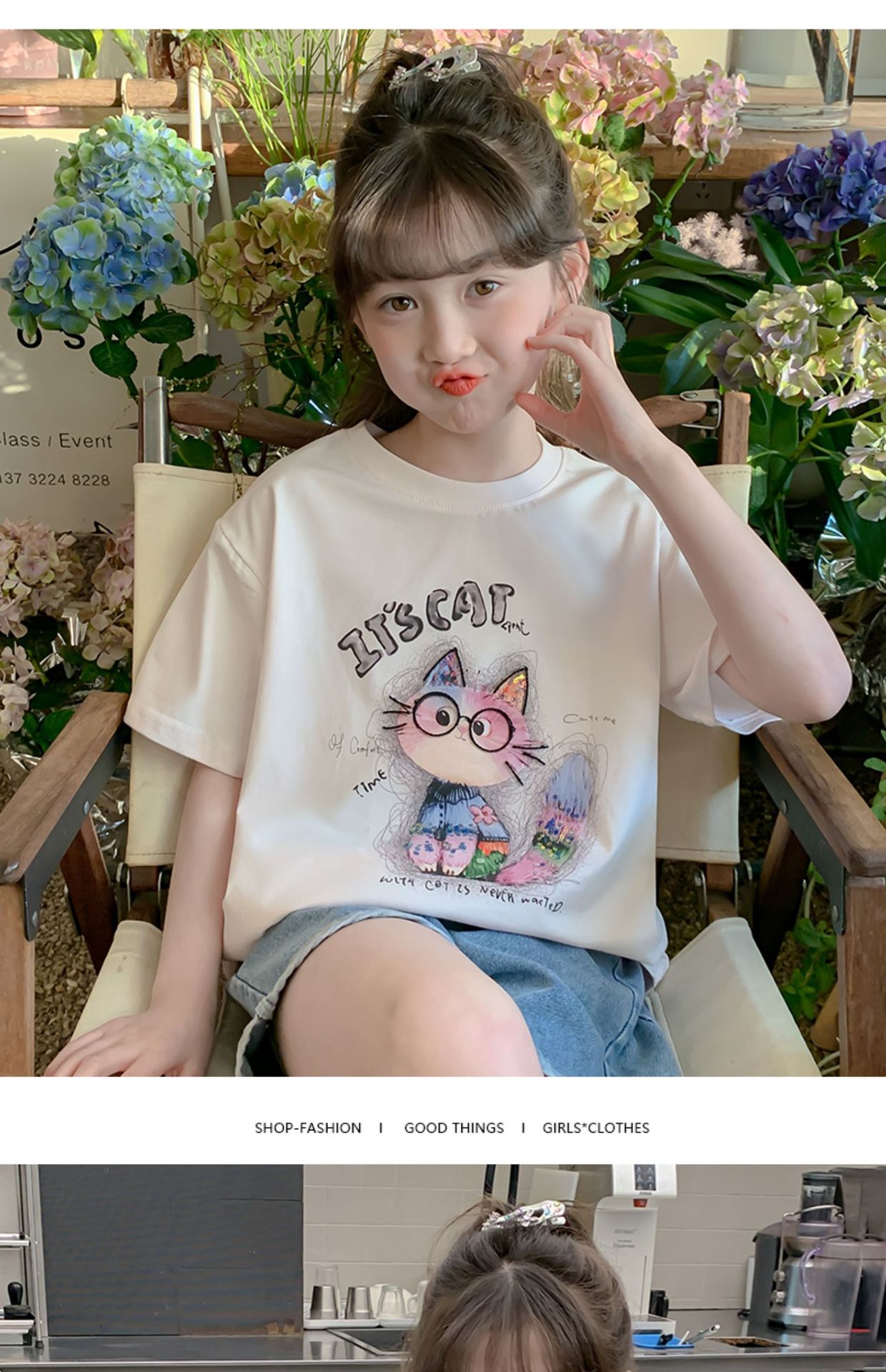 소녀 반팔 여름 2025 새로운 어린이 여름 티셔츠 서양식 좋은 티셔츠 작은 소녀의 면 얇은 탑스토어 가기