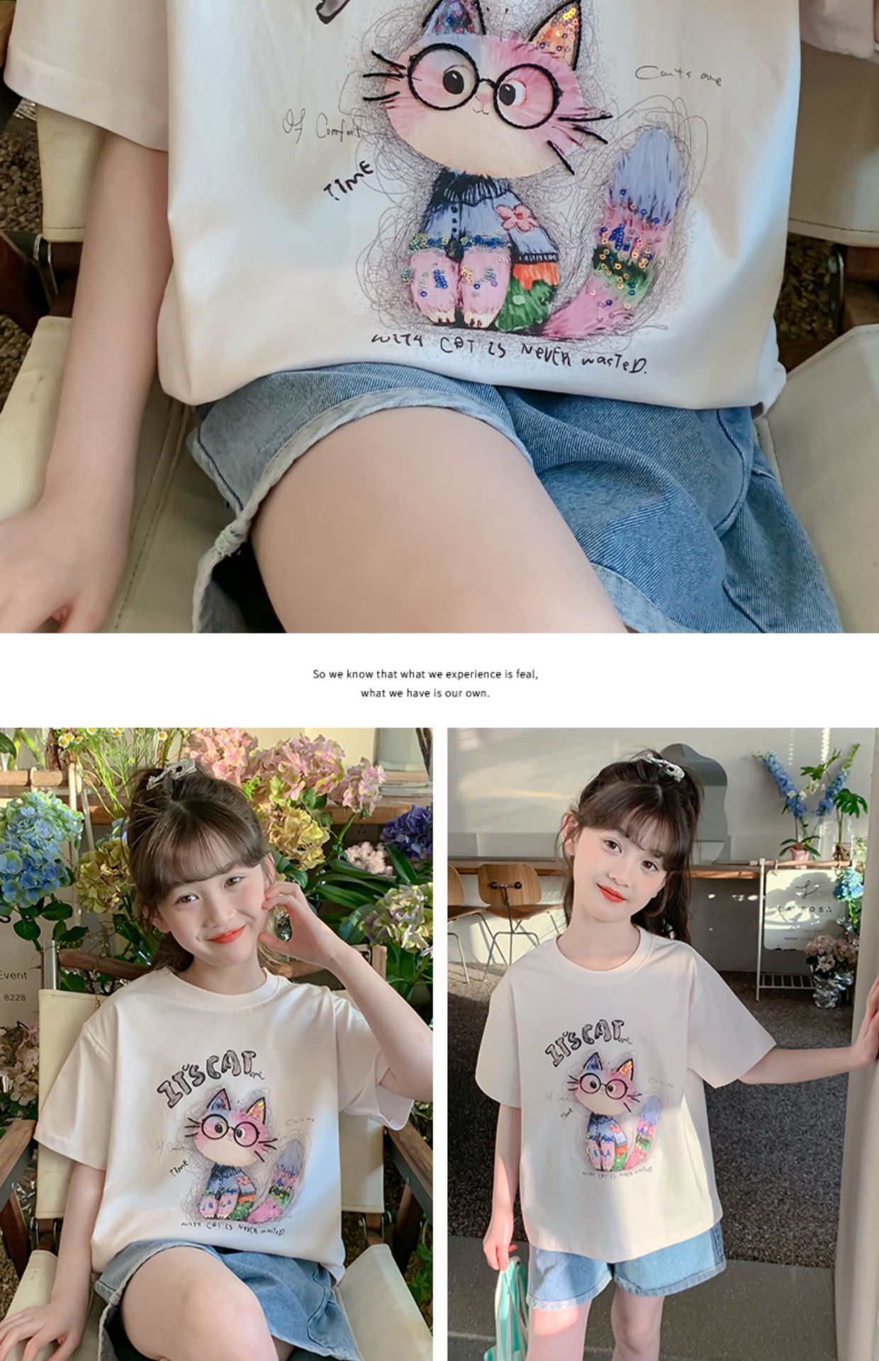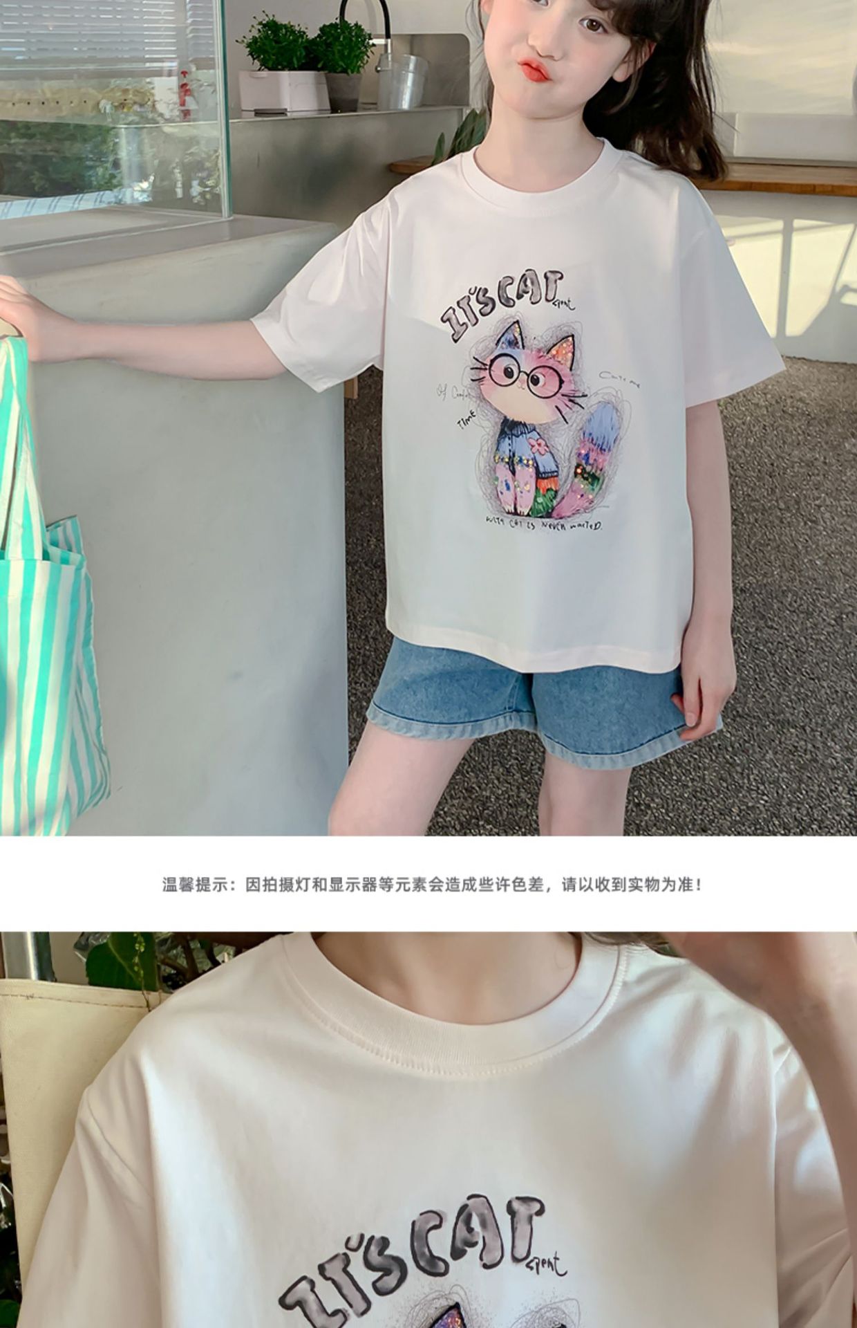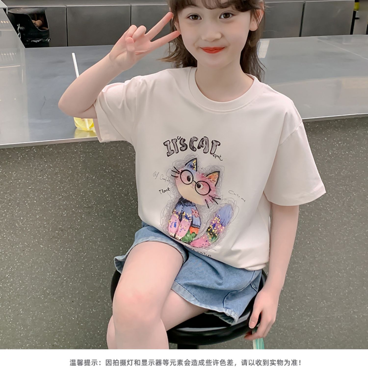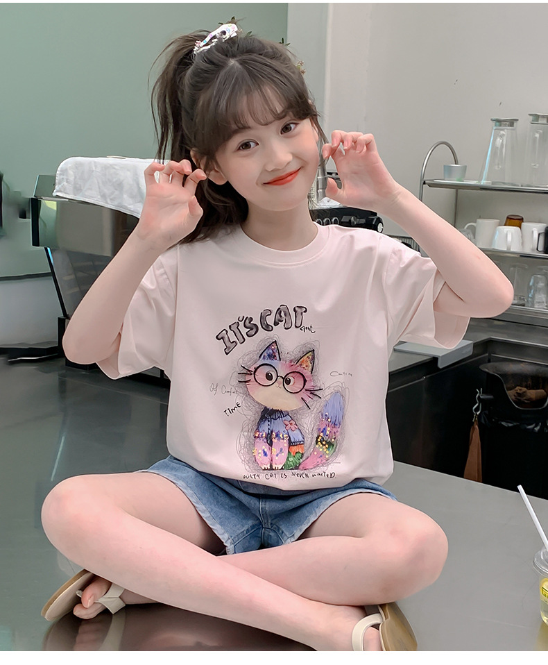 소녀 반팔 여름 2025 새로운 어린이 여름 티셔츠 서양식 좋은 티셔츠 작은 소녀의 면 얇은 탑스토어 가기
