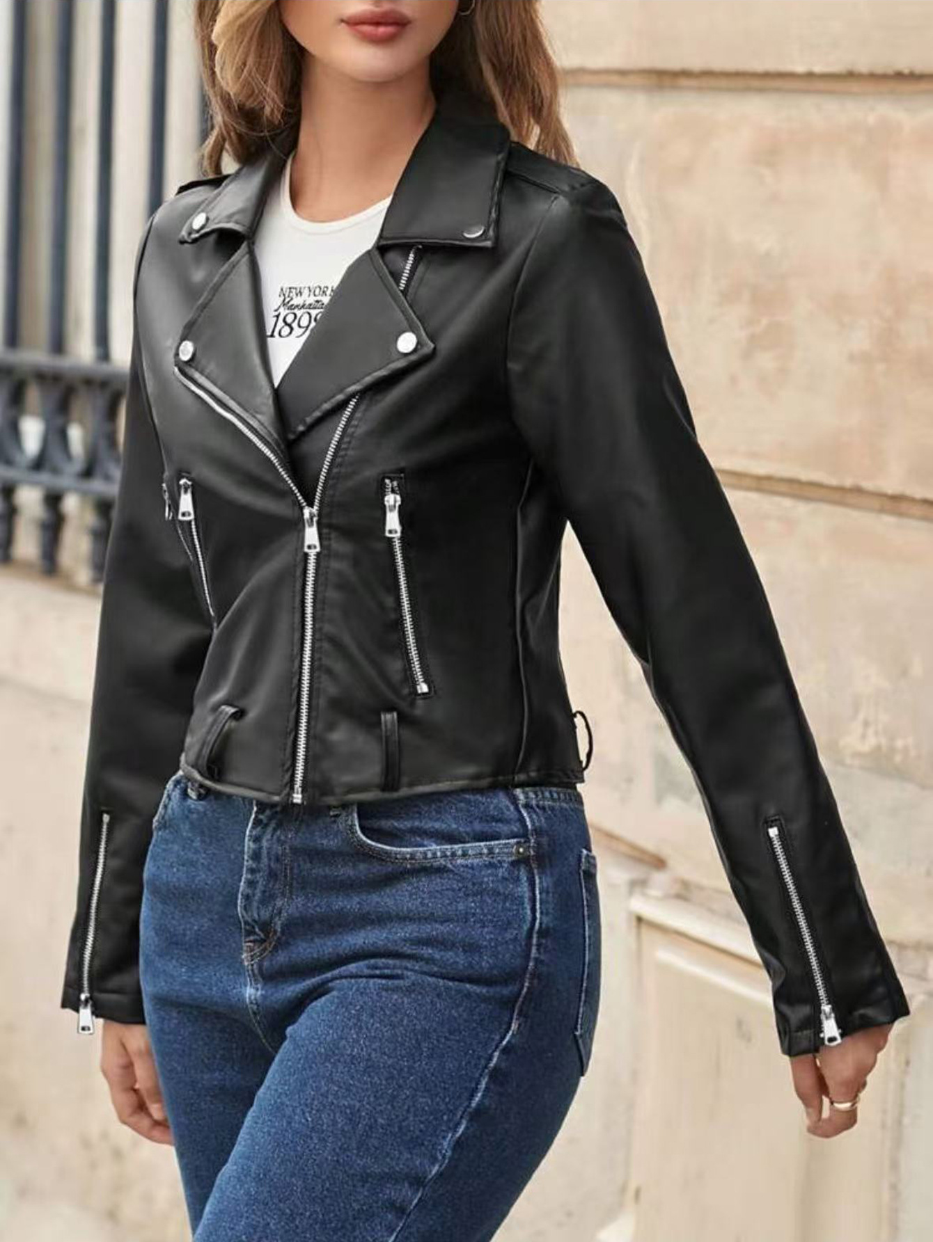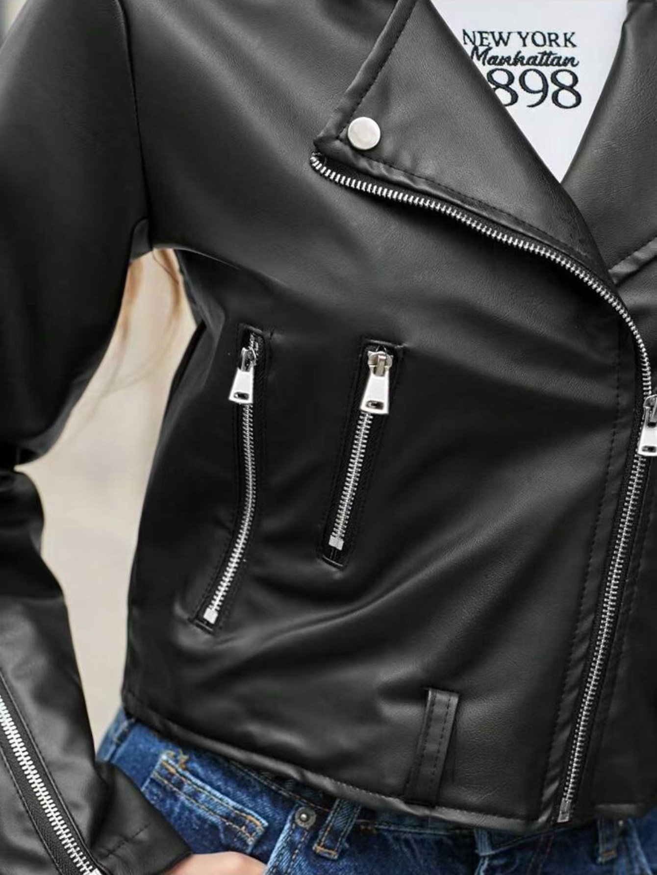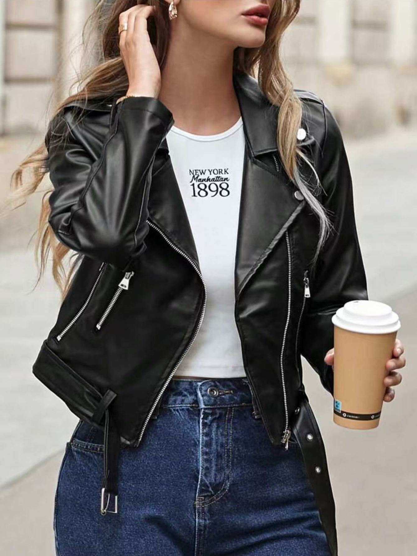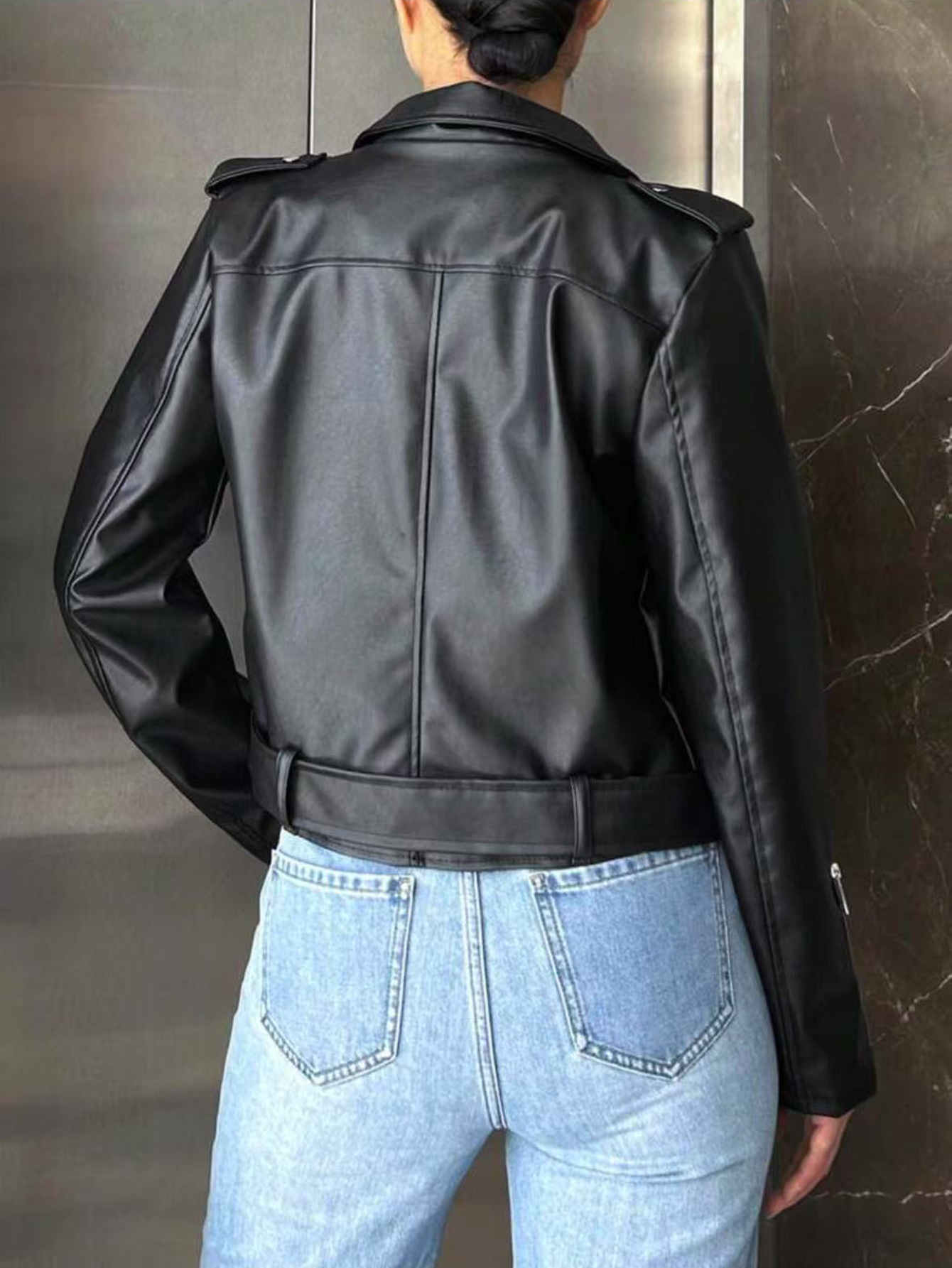 국경을 넘나드는 새로운 여성 짧은 한국 스타일 슬림 블랙 pu 작은 코트 오토바이 가죽 자켓 코트 모조 가죽스토어 가기