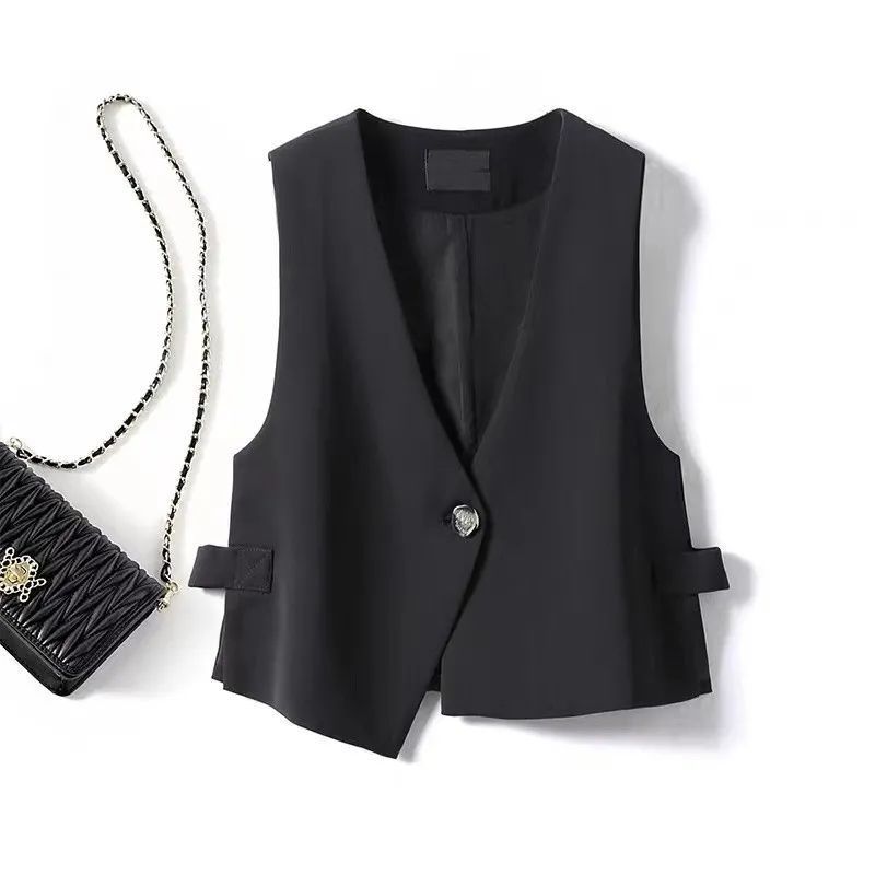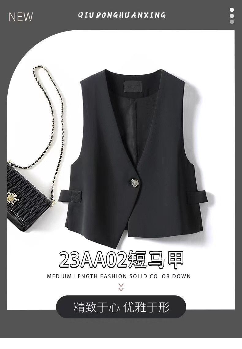 여성용 짧은 양복 조끼 2025 봄, 가을 새로운 한국 스타일 세련된 양복 조끼 양복 조끼스토어 가기