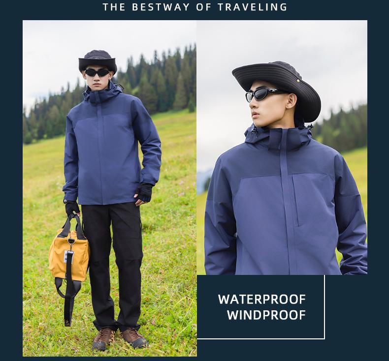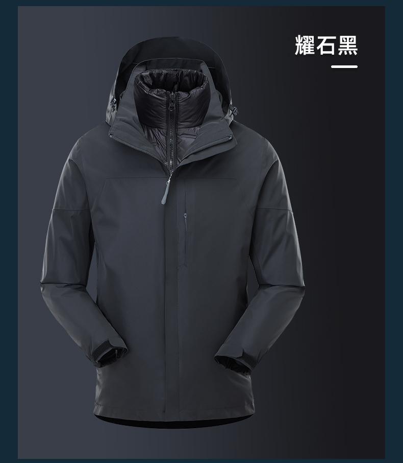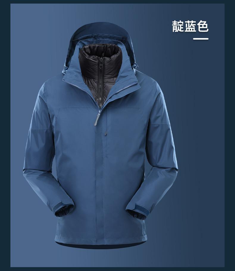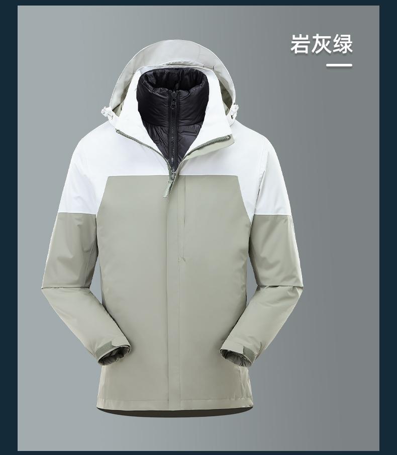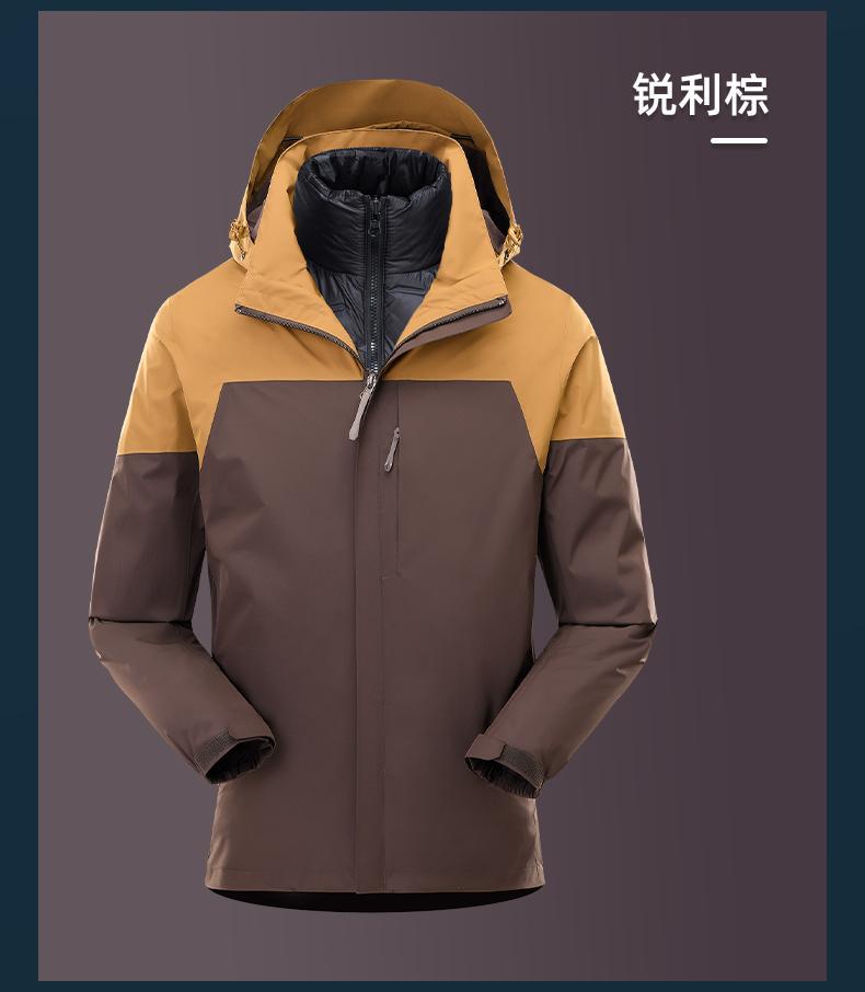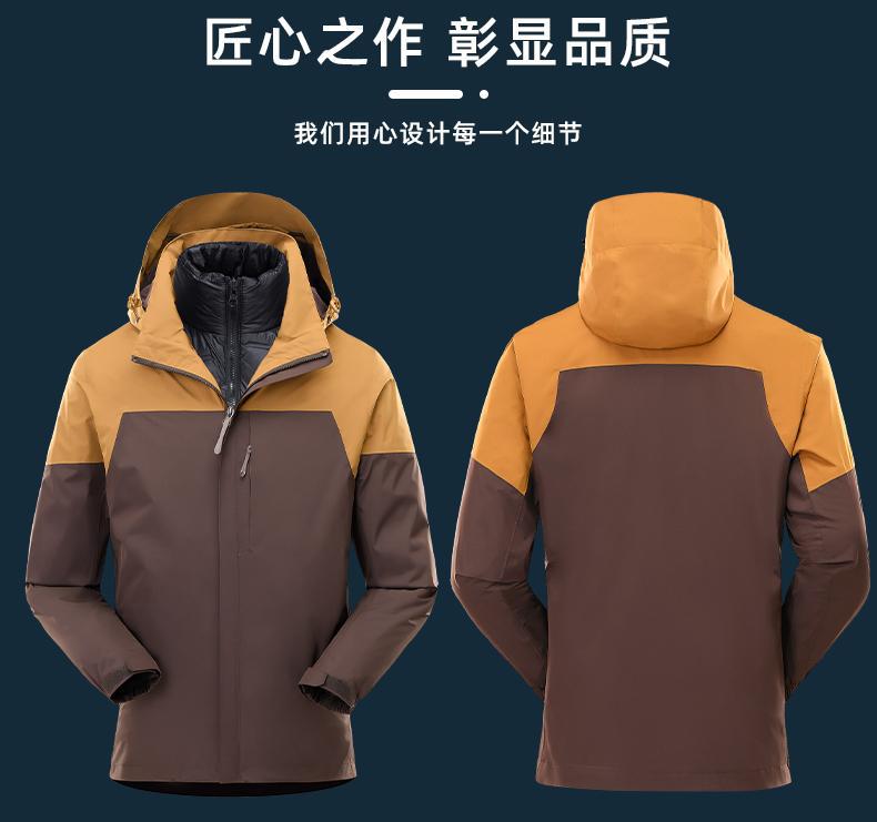 남성용 및 여성용 다운 3-in-1 탈착식 야외 여행 및 캠핑 재킷 방수 및 방풍 작업복 로고 인쇄스토어 가기
