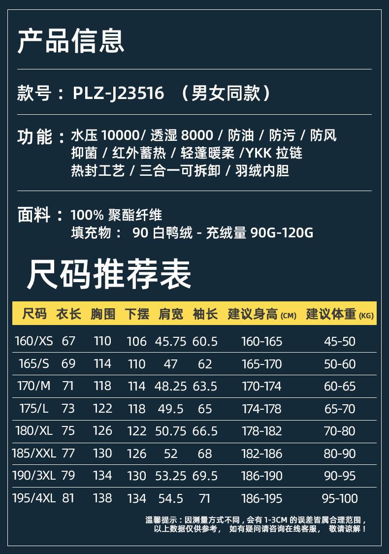 남성용 및 여성용 다운 3-in-1 탈착식 야외 여행 및 캠핑 재킷 방수 및 방풍 작업복 로고 인쇄