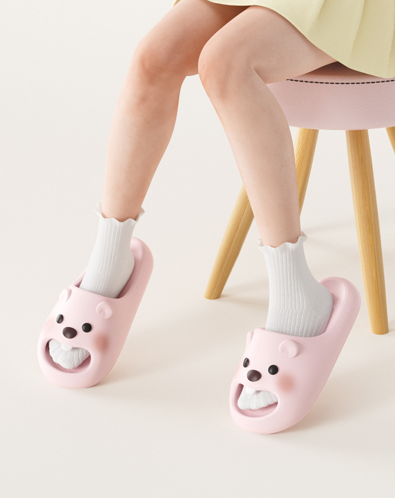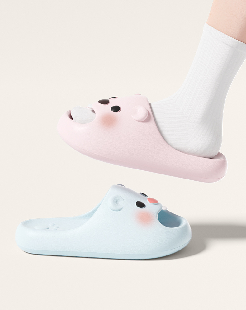 여자를위한 귀여운 곰 샌들과 슬리퍼 여름 새로운 복장 만화 경량 부드러운 바닥 슬리퍼 여성용 실내 샌들