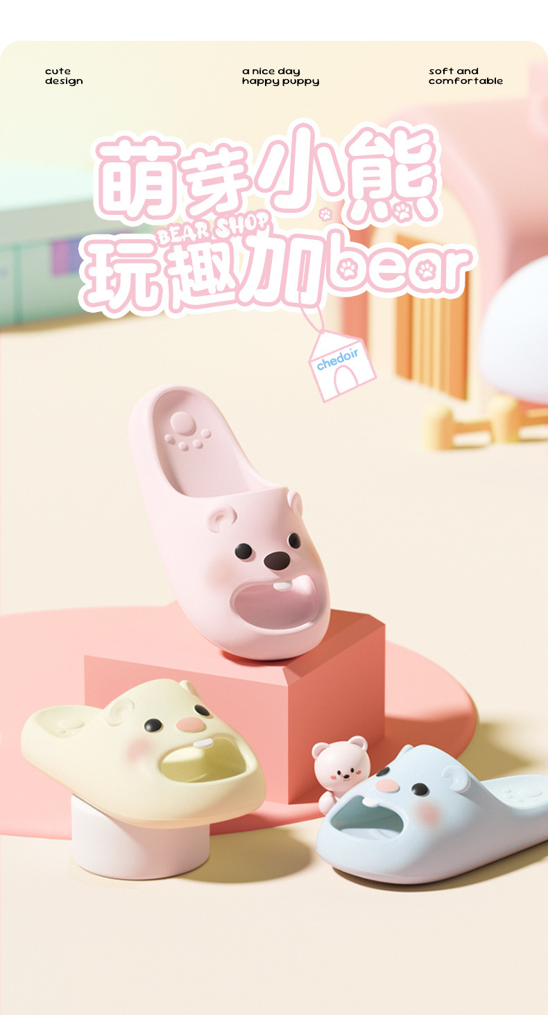 여자를위한 귀여운 곰 샌들과 슬리퍼 여름 새로운 복장 만화 경량 부드러운 바닥 슬리퍼 여성용 실내 샌들스토어 가기