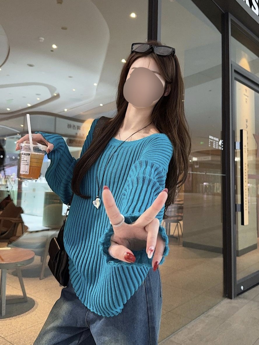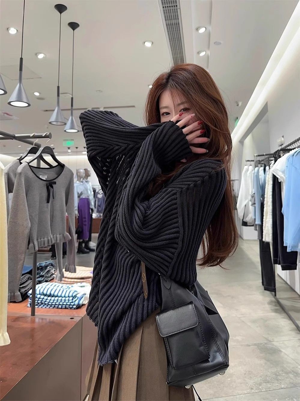 여성을위한 한국 스타일 마이크로 시스루 게으른 스웨터 2025 새로운 가을 느슨한 슬리밍 중공 태양 보호 블라우스스토어 가기