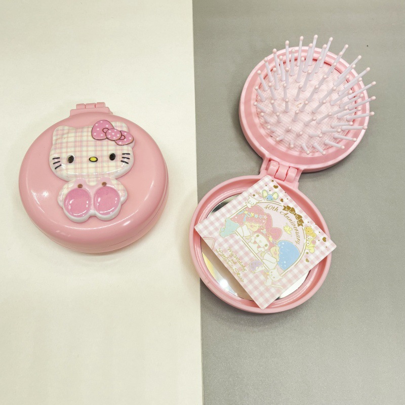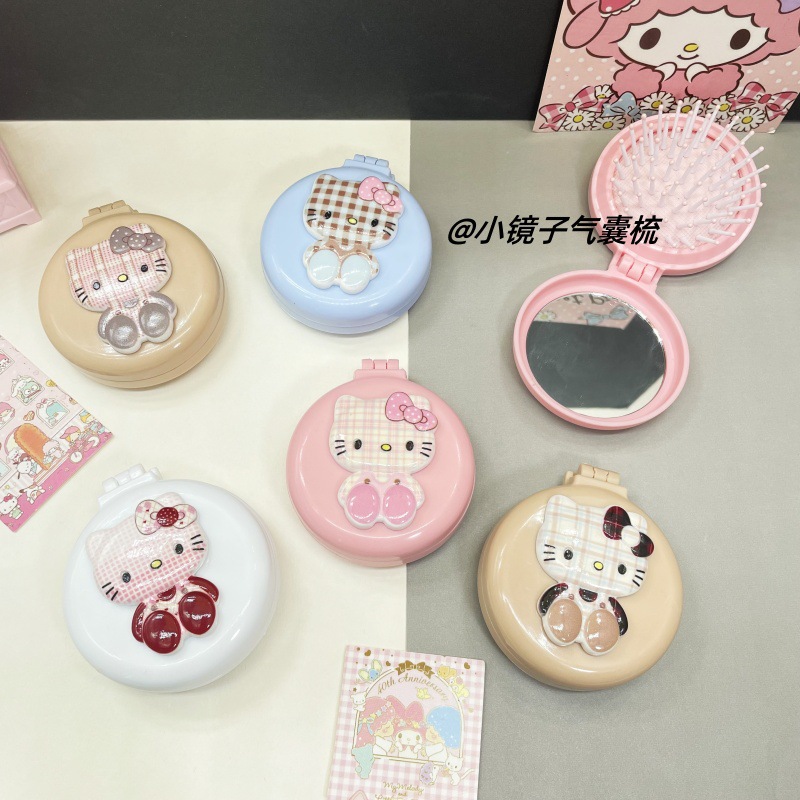 만화 고양이 접이식 에어 쿠션 빗 귀여운 소녀 휴대용 에어백 빗 마사지 빗 거울 통합 작은 빗스토어 가기