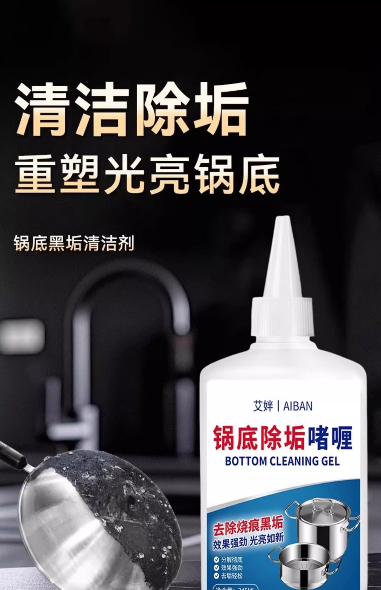 냄비 바닥 검은 때 제거 젤 클리너 주방 냄비 가정용 청소 검은 때 제거제 냄비 바닥 검은 때 제거제