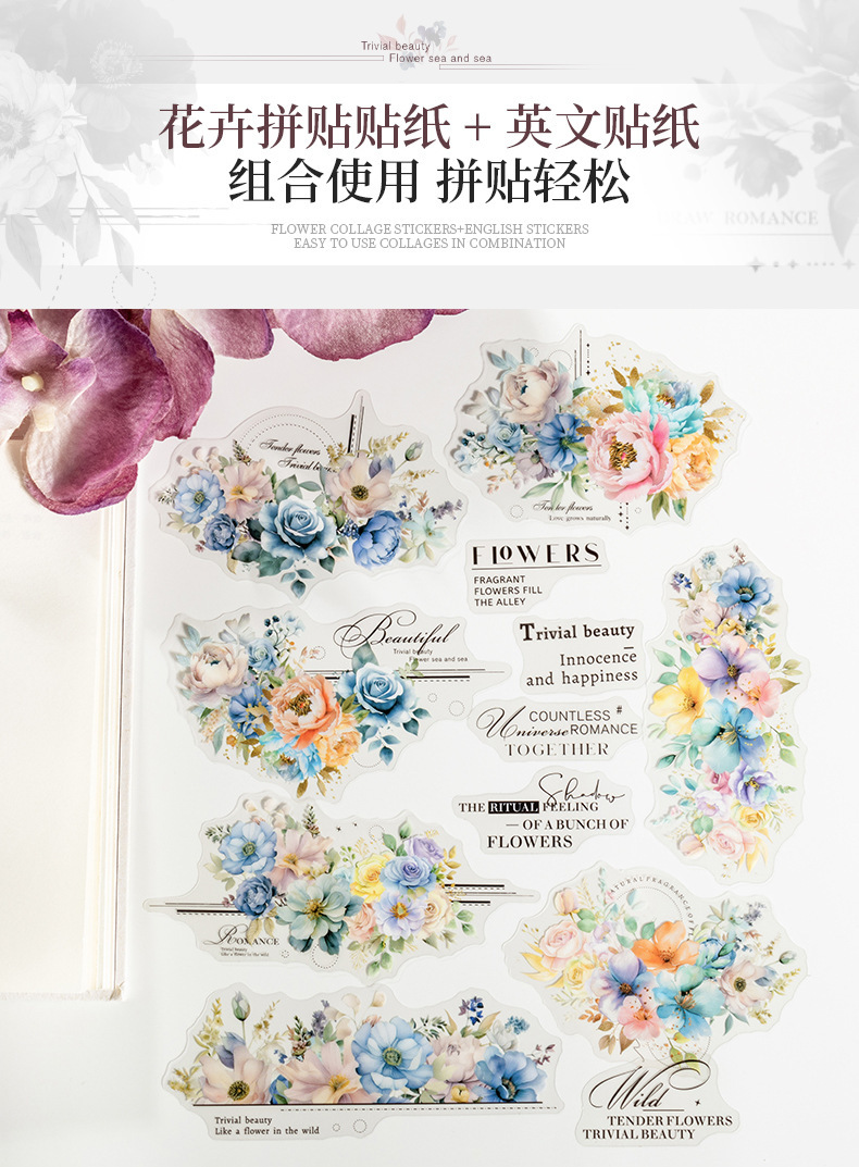 토마토 소스 애완 동물 스티커 황혼의 꽃 바다 시리즈 꽃 영어 소재 손 계정 물 컵 diy 장식 구오 카드 스티커스토어 가기