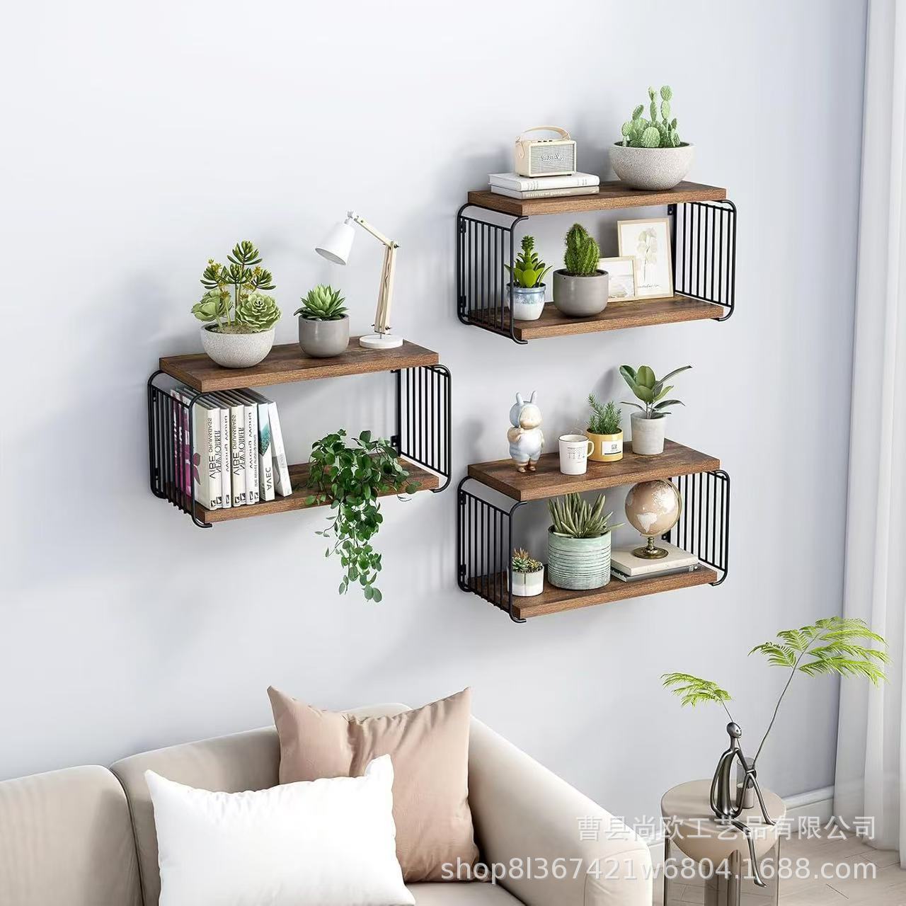 철과 나무 결합 벽 장식품 보관함 나무 벽걸이 침실 침대 옆 테이블 단단한 나무 거실 손으로 만든 디스플레이 스탠드