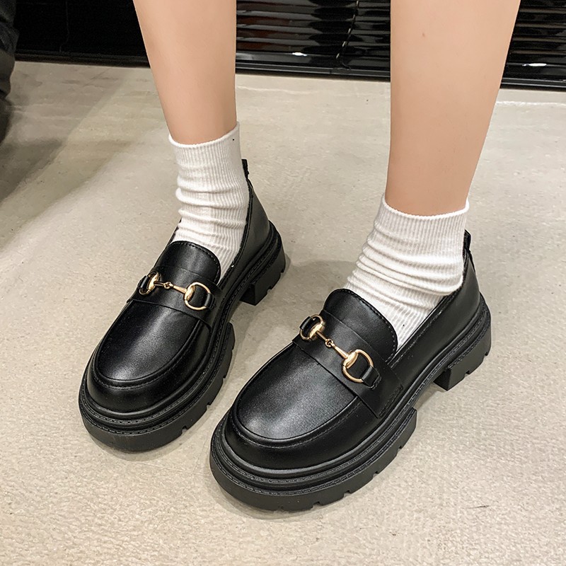한국 패션 두꺼운 밑창 로퍼, 여성용 슬립온 부드러운 밑창 통근 신발, 2025 여름 신작 다용도 소형 가죽 신발