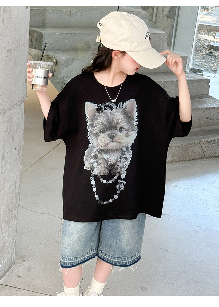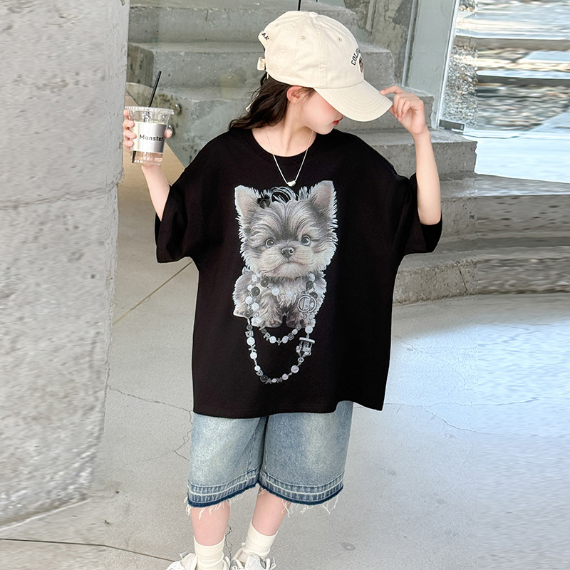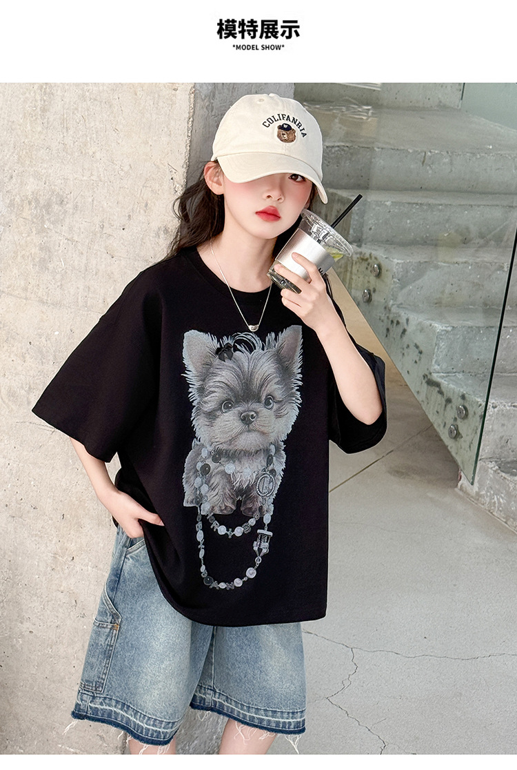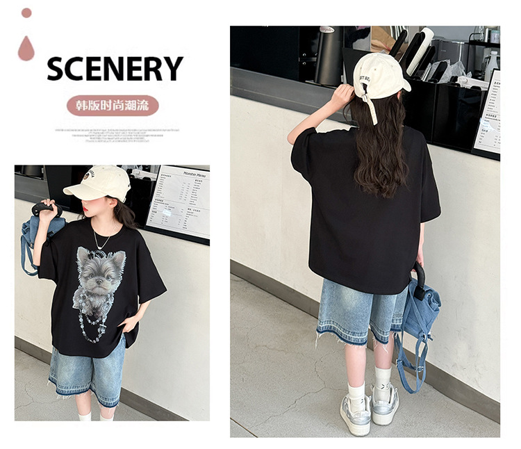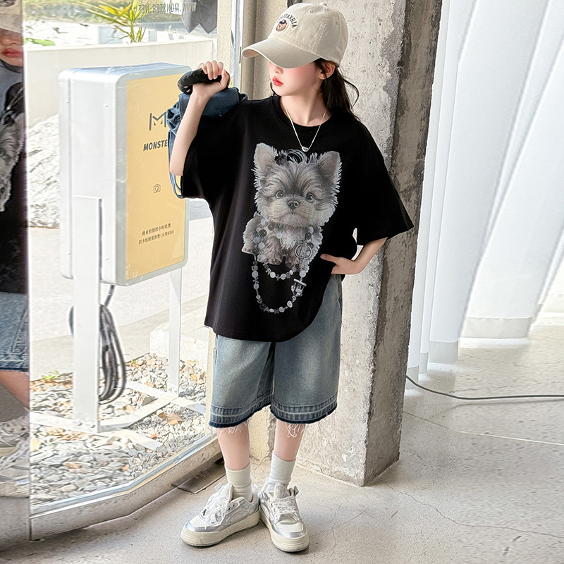 소녀 반팔 티셔츠 2025 여름 새로운 어린이 서양식 탑 걸스 유행 옷 큰 어린이 여름 세트스토어 가기