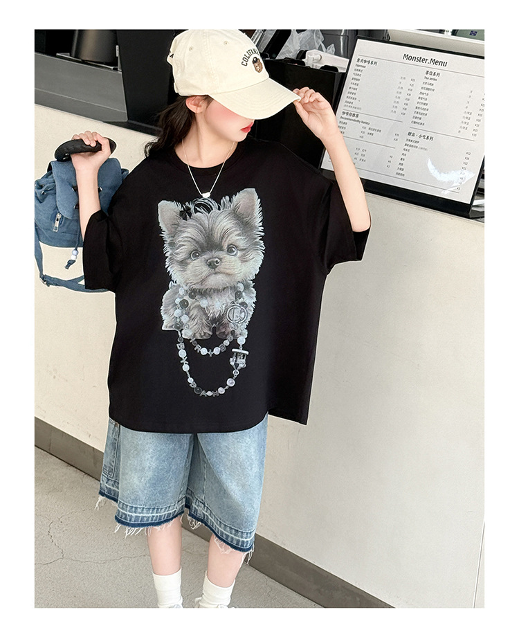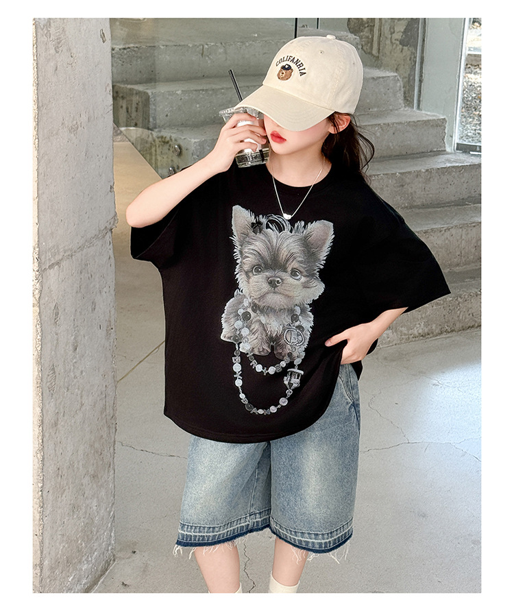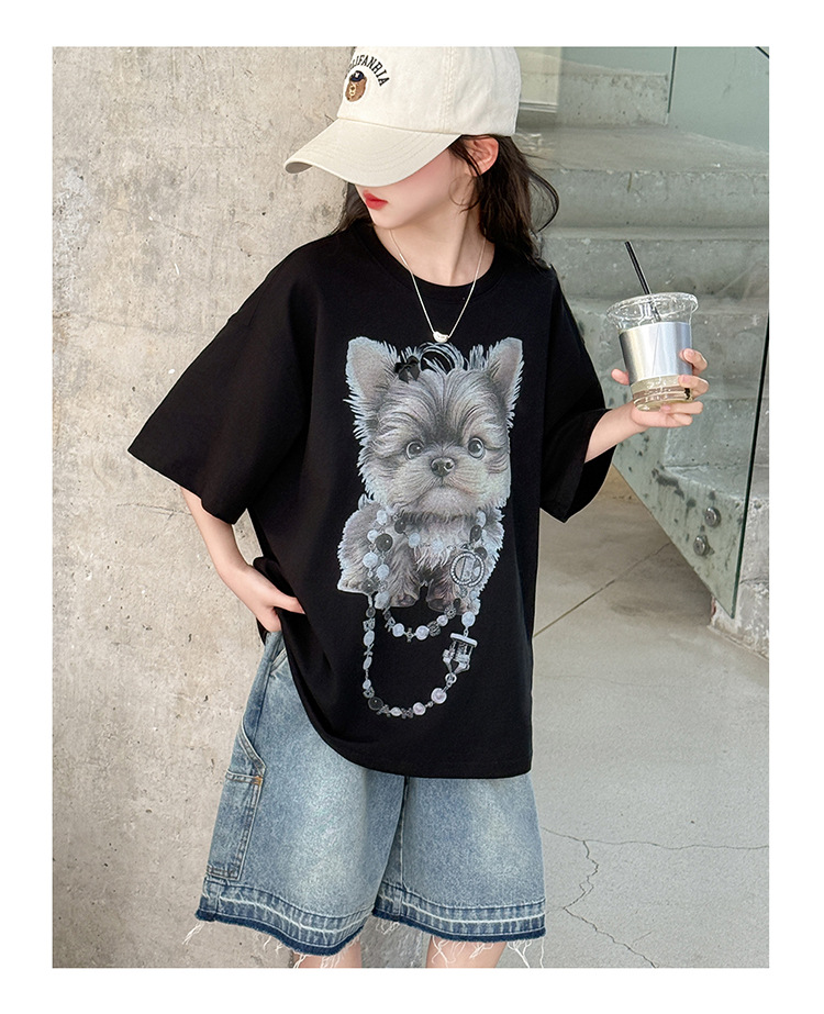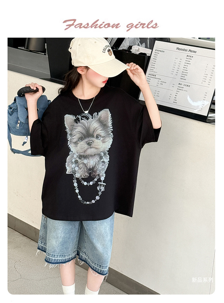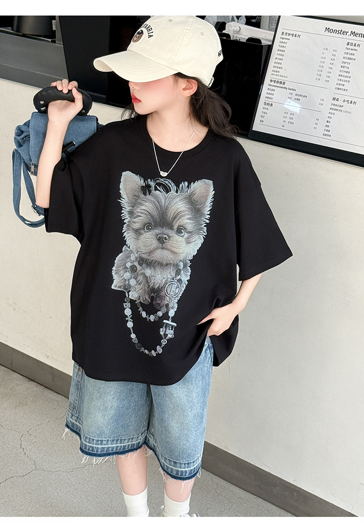 소녀 반팔 티셔츠 2025 여름 새로운 어린이 서양식 탑 걸스 유행 옷 큰 어린이 여름 세트스토어 가기
