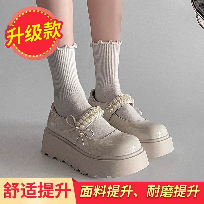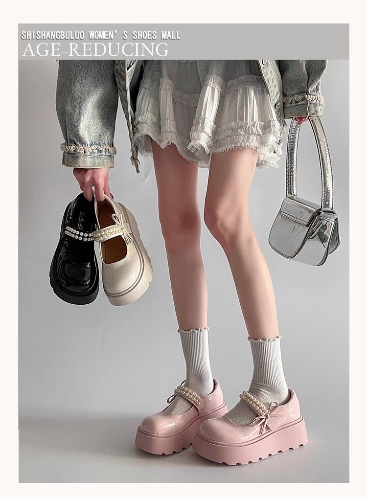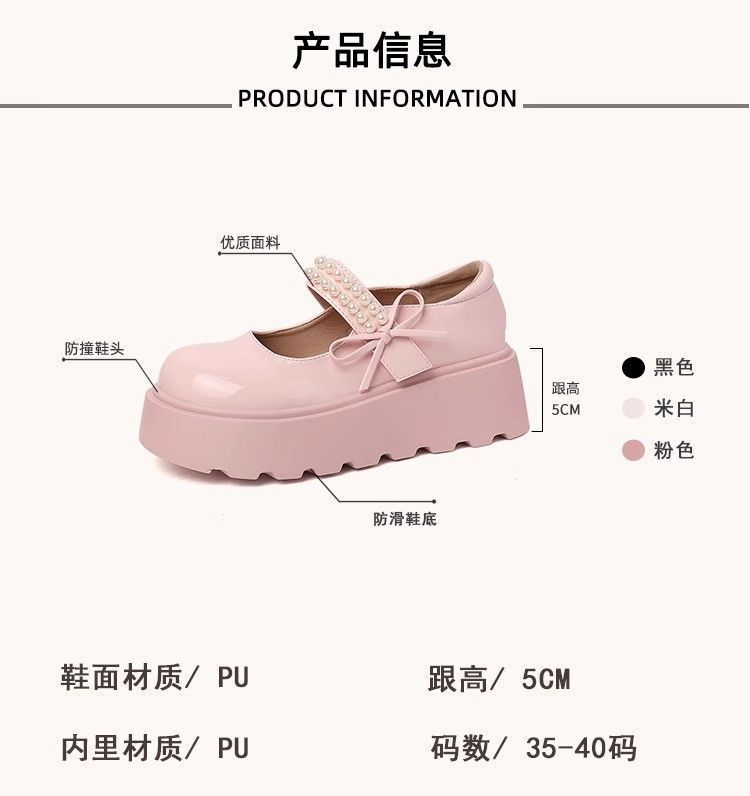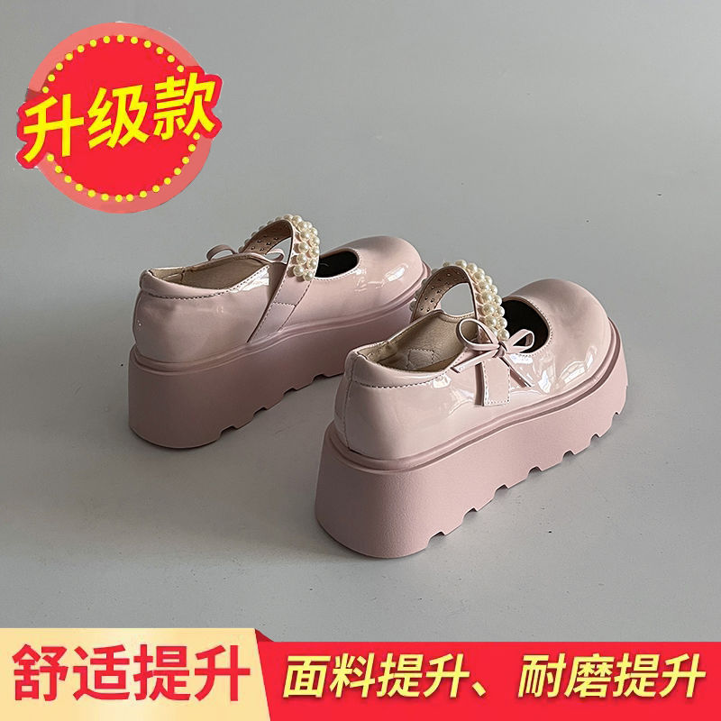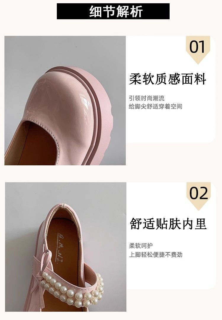 핑크 두꺼운 가죽 신발 여성 2025 년 여름 새로운 도착 프랑스 스타일 레트로 두꺼운 굽 진주 메리 제인 경량 싱글 레이어 신발스토어 가기