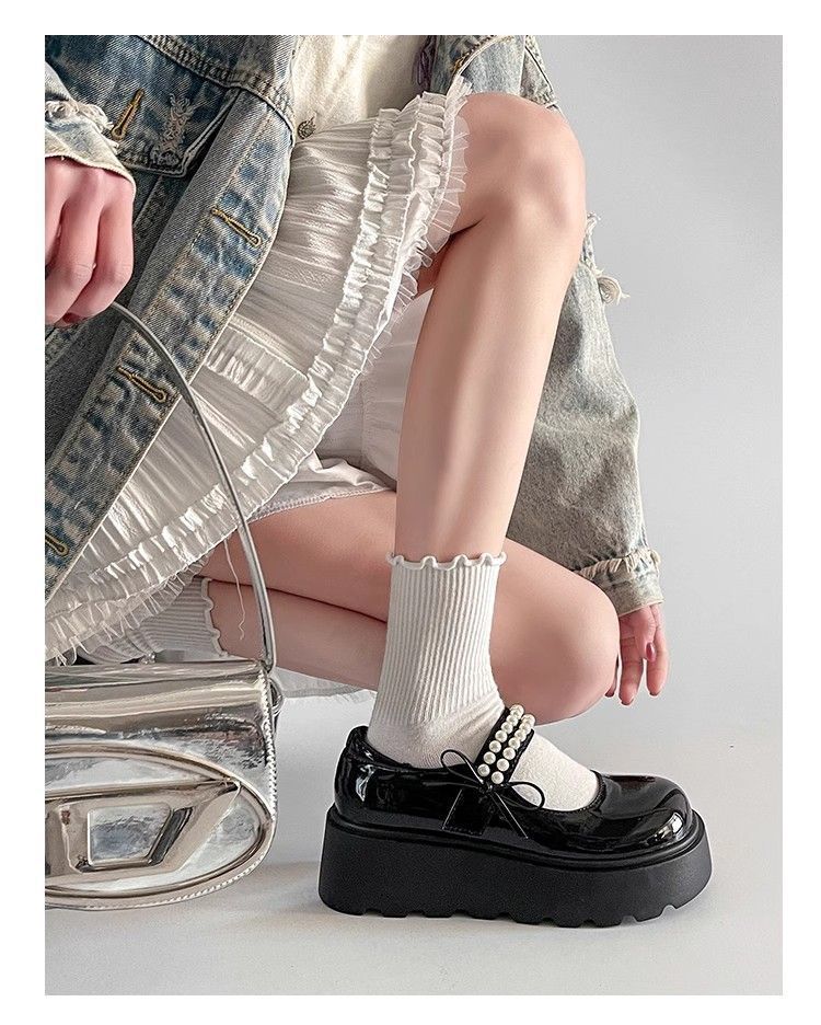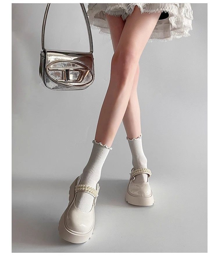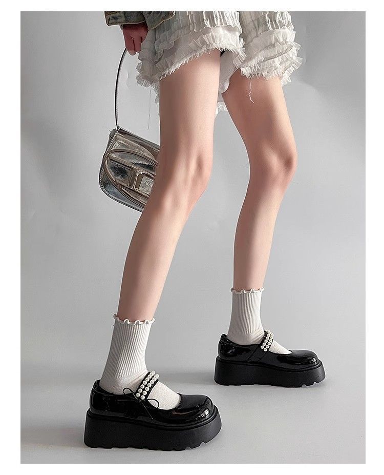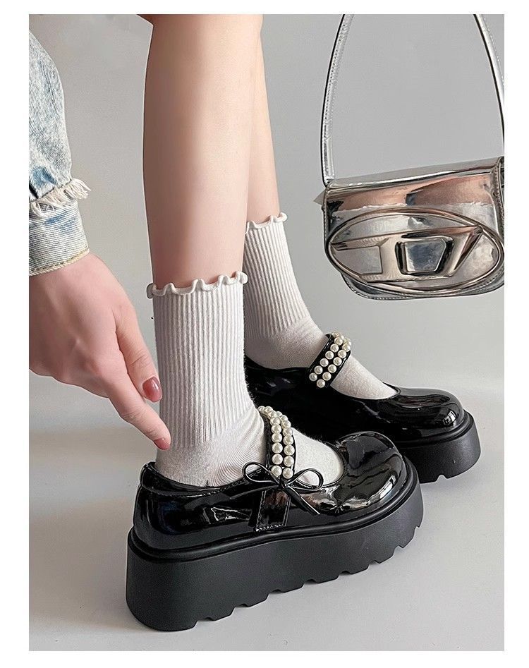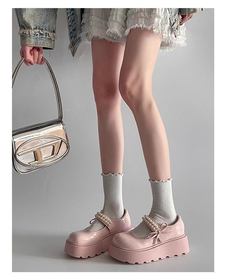 핑크 두꺼운 가죽 신발 여성 2025 년 여름 새로운 도착 프랑스 스타일 레트로 두꺼운 굽 진주 메리 제인 경량 싱글 레이어 신발스토어 가기