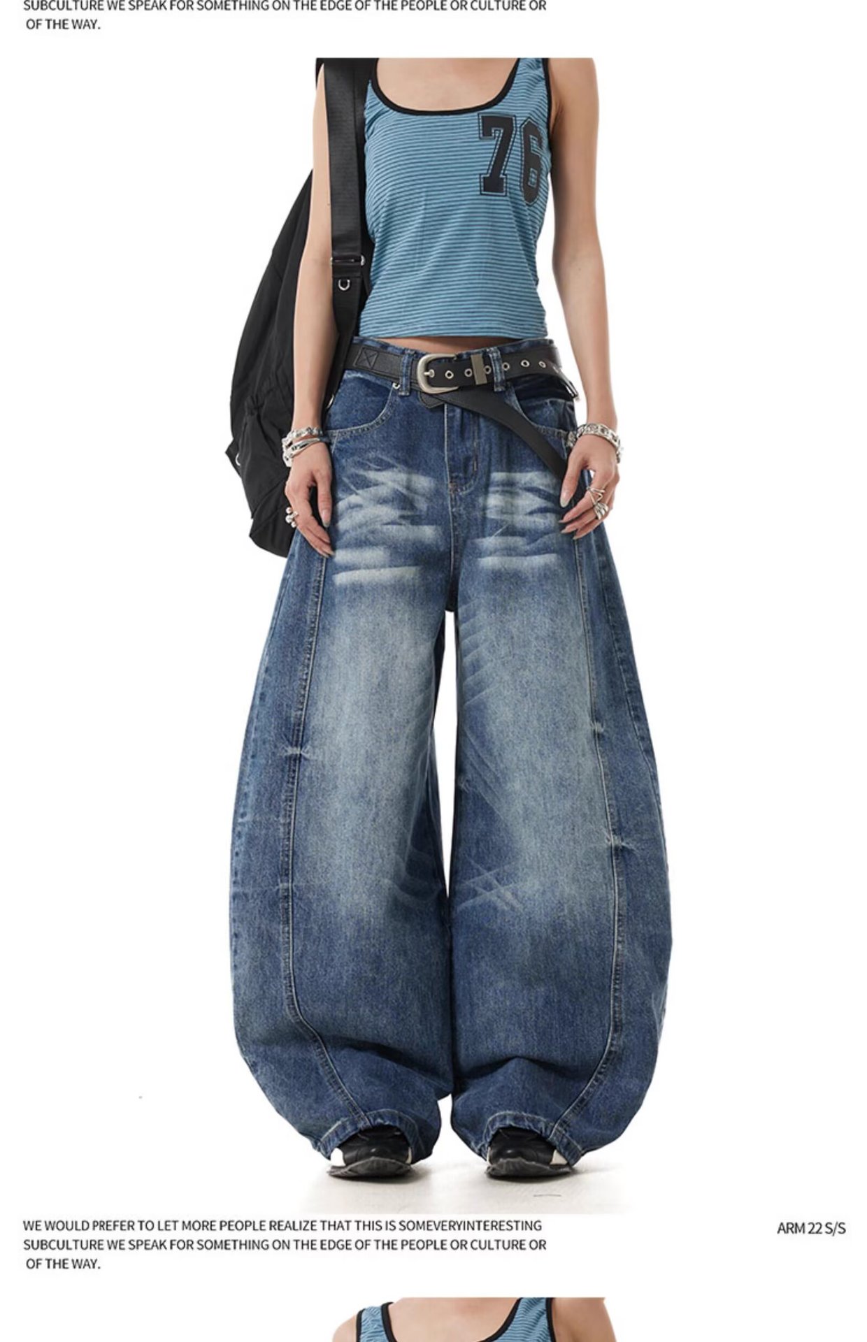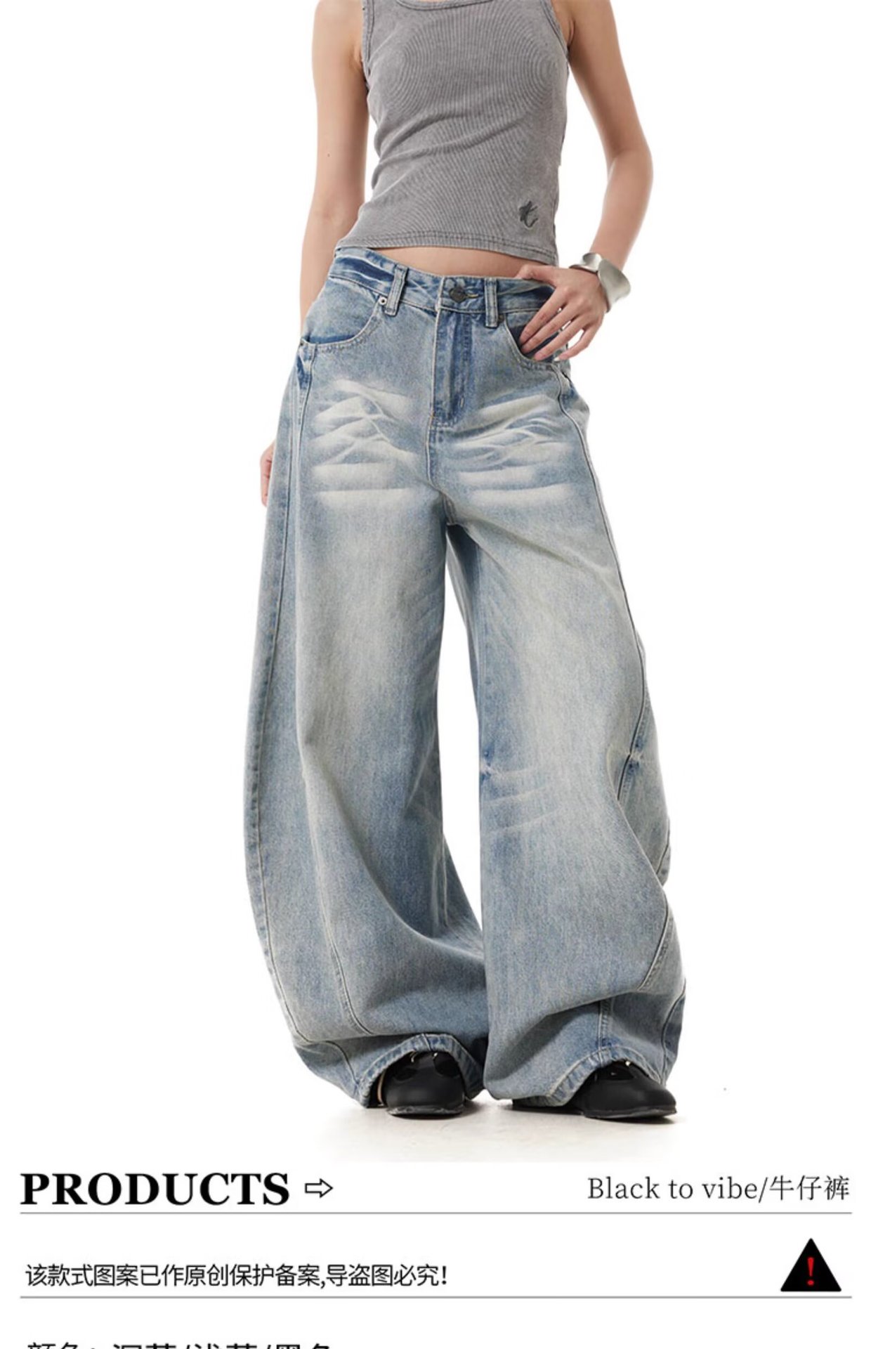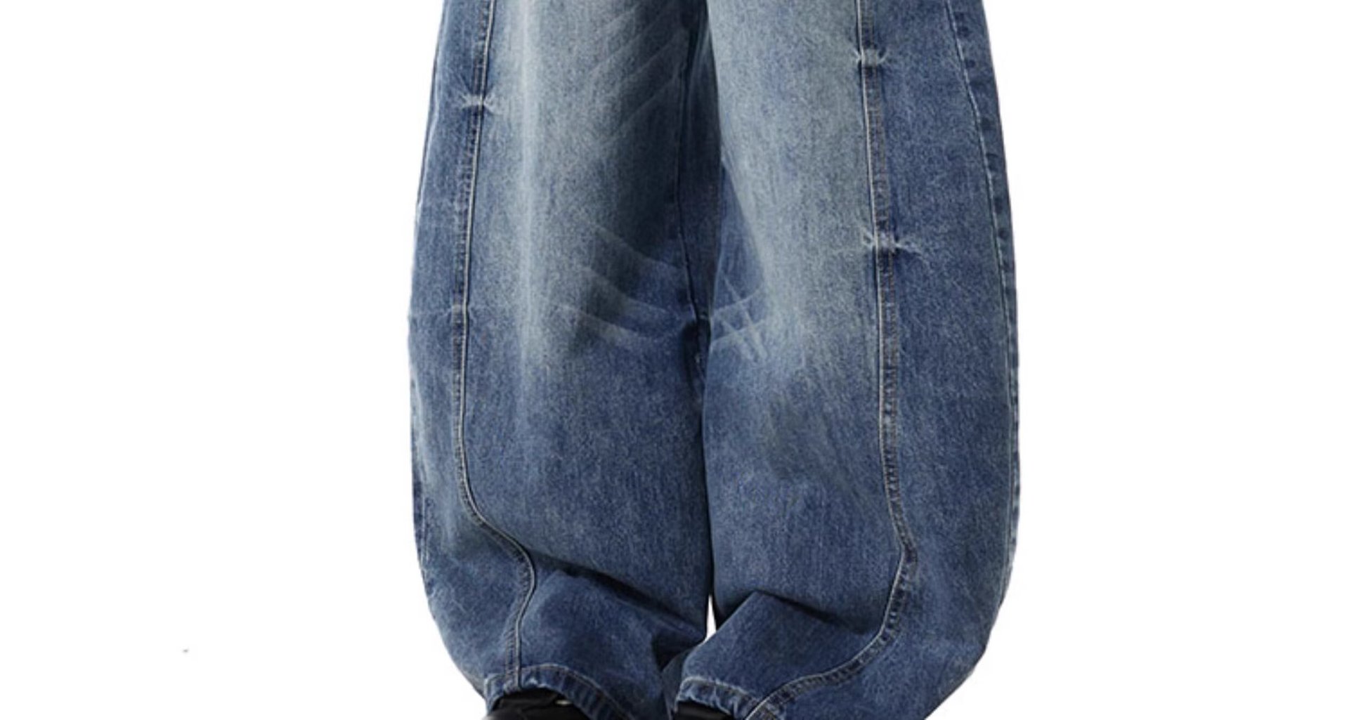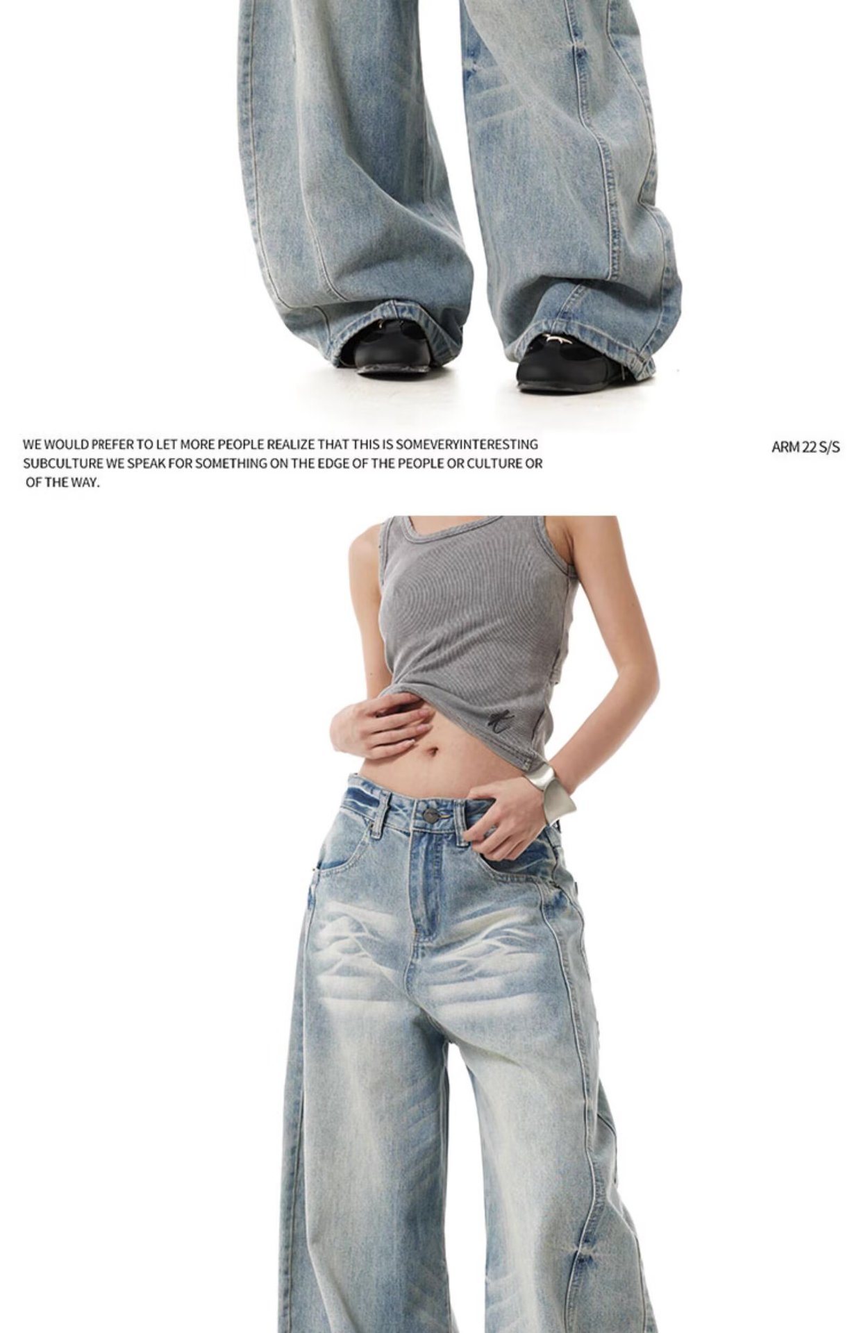 2025 봄 신작 사이드 프레스드 레트로 워싱 와이드 레그 청바지 남성용 루즈 슬리밍 캐주얼 바닥 길이 바지스토어 가기