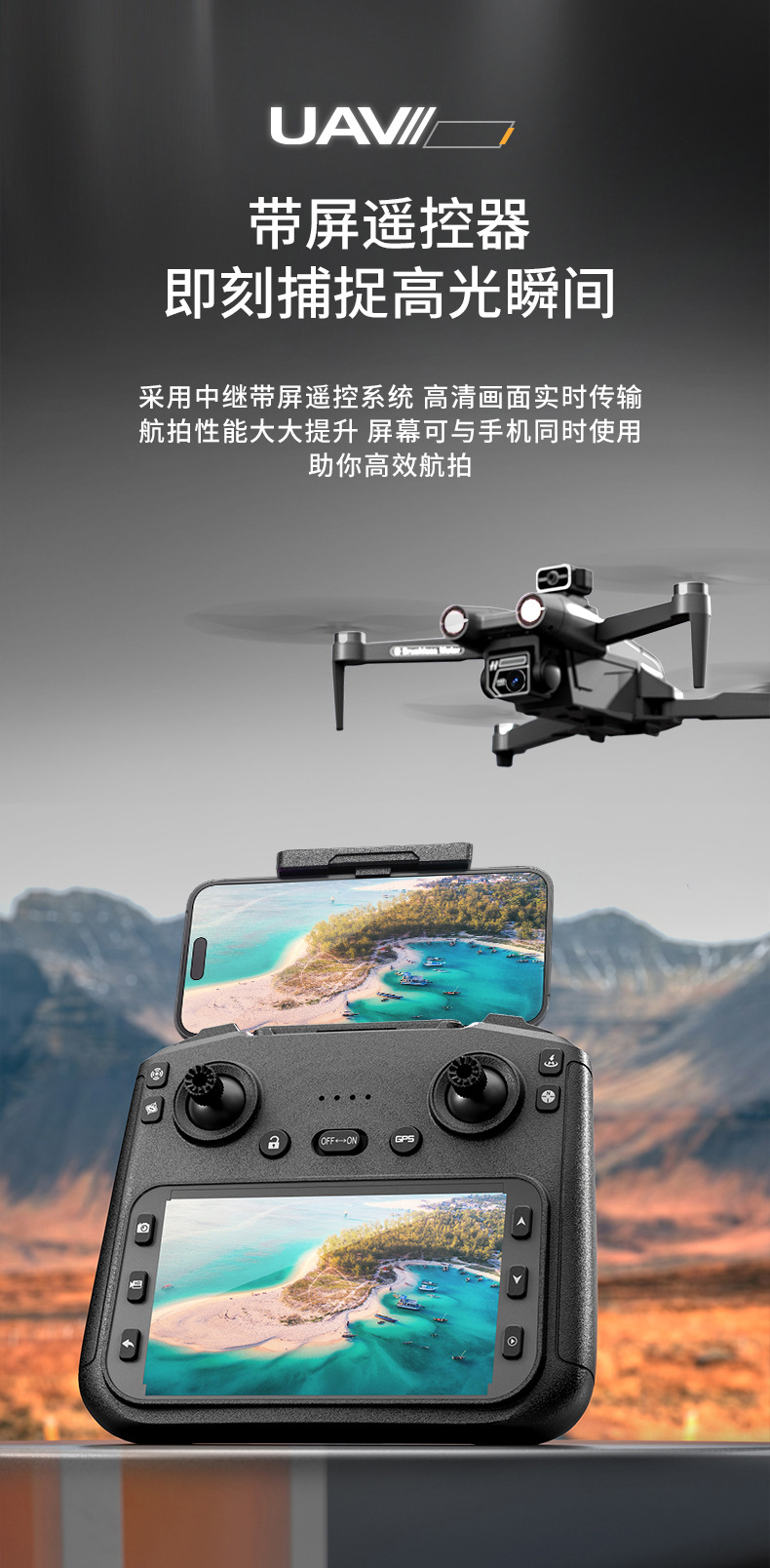 JJRC HD 항공 사진 촬영 GPS 스크린 탑재 드론 2.4G 디스플레이 리모컨 장난감 브러시리스 원격 조종 항공기