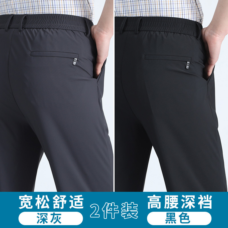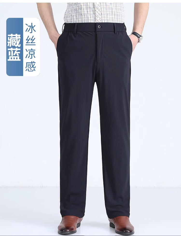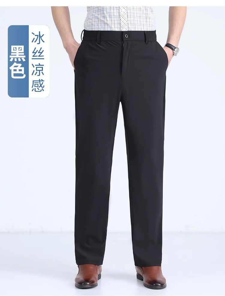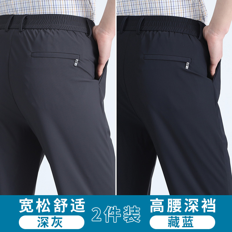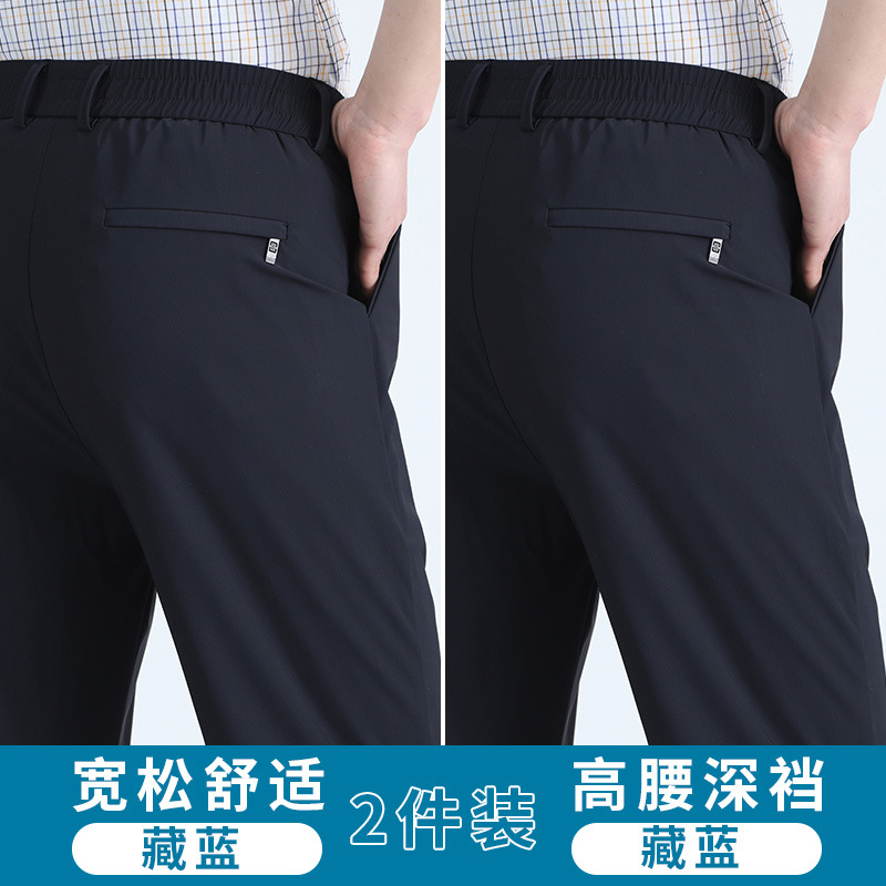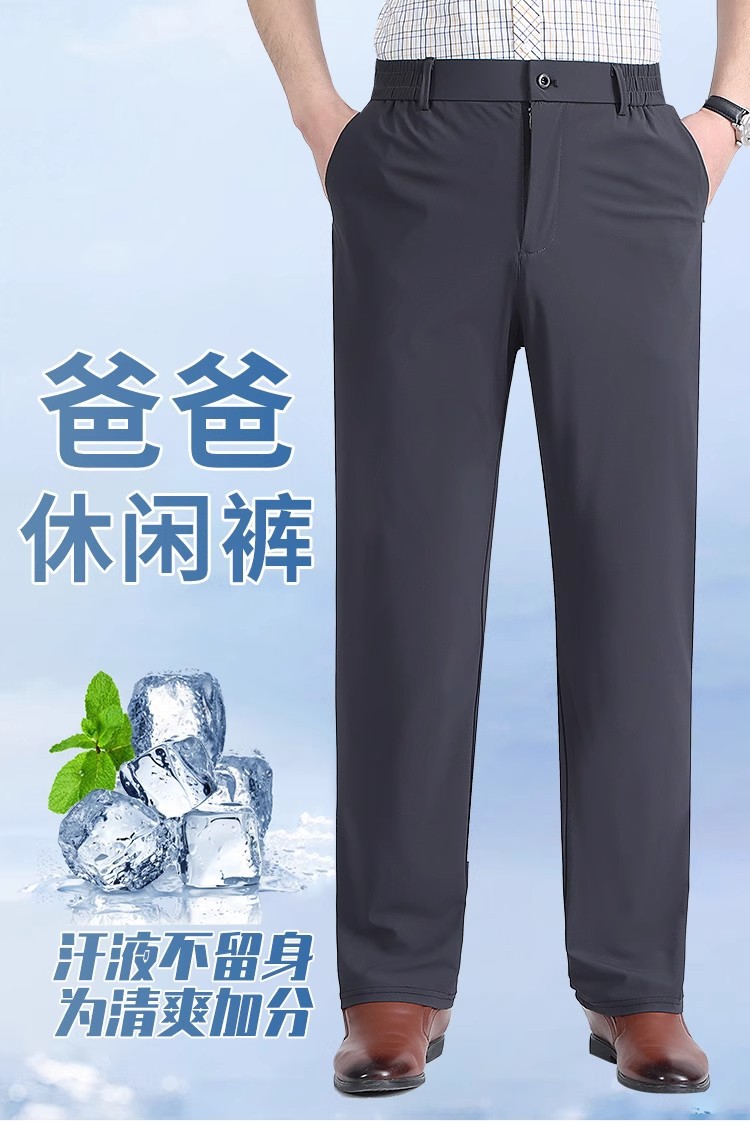 여름 새로운 아이스 실크 아빠 바지 남자 여름 얇은 캐주얼 스포츠 바지 중년 및 노인을위한 느슨한 빠른 건조 바지스토어 가기