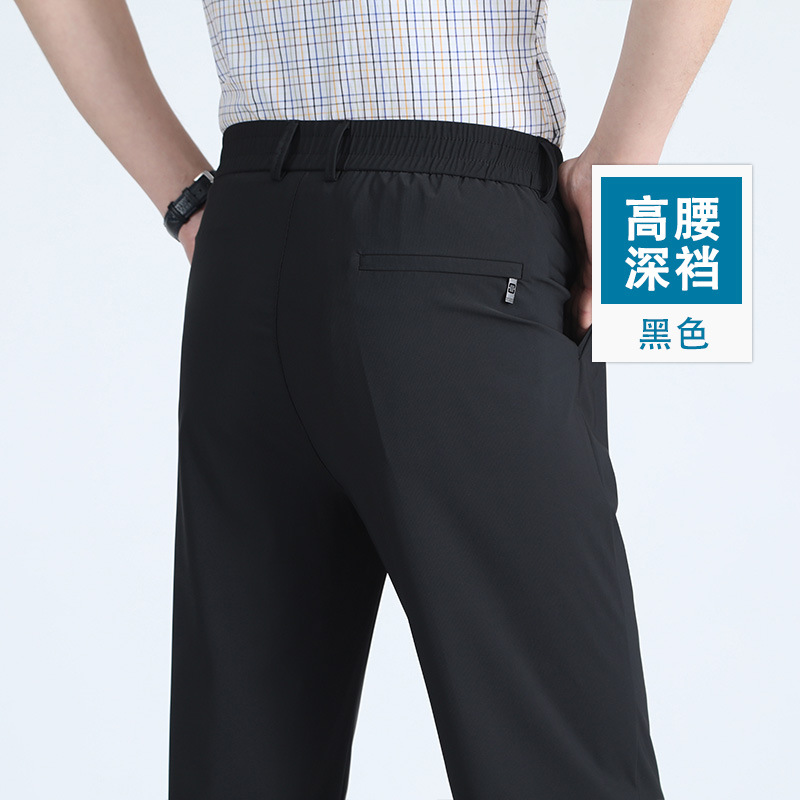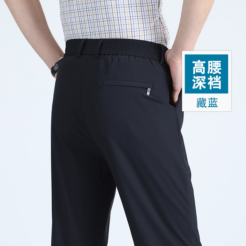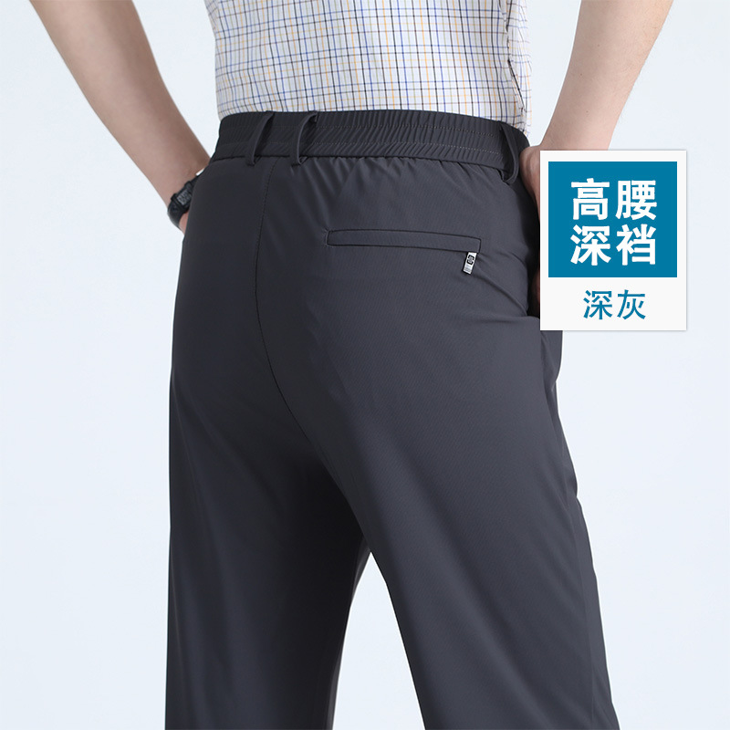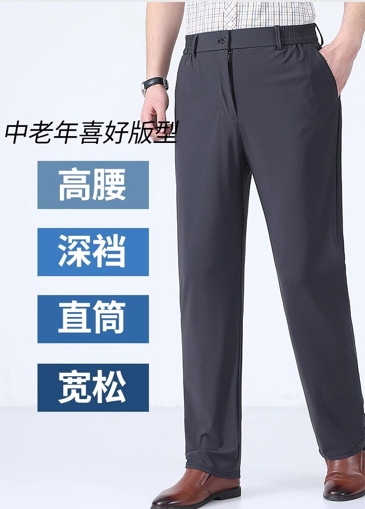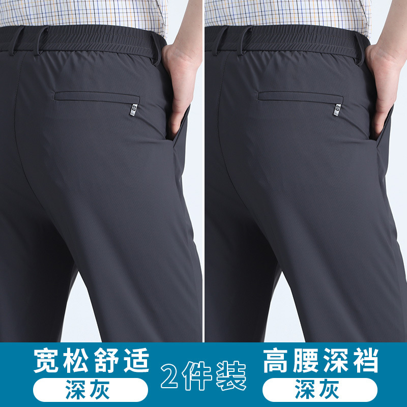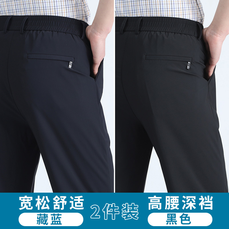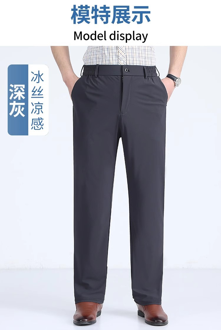 여름 새로운 아이스 실크 아빠 바지 남자 여름 얇은 캐주얼 스포츠 바지 중년 및 노인을위한 느슨한 빠른 건조 바지스토어 가기