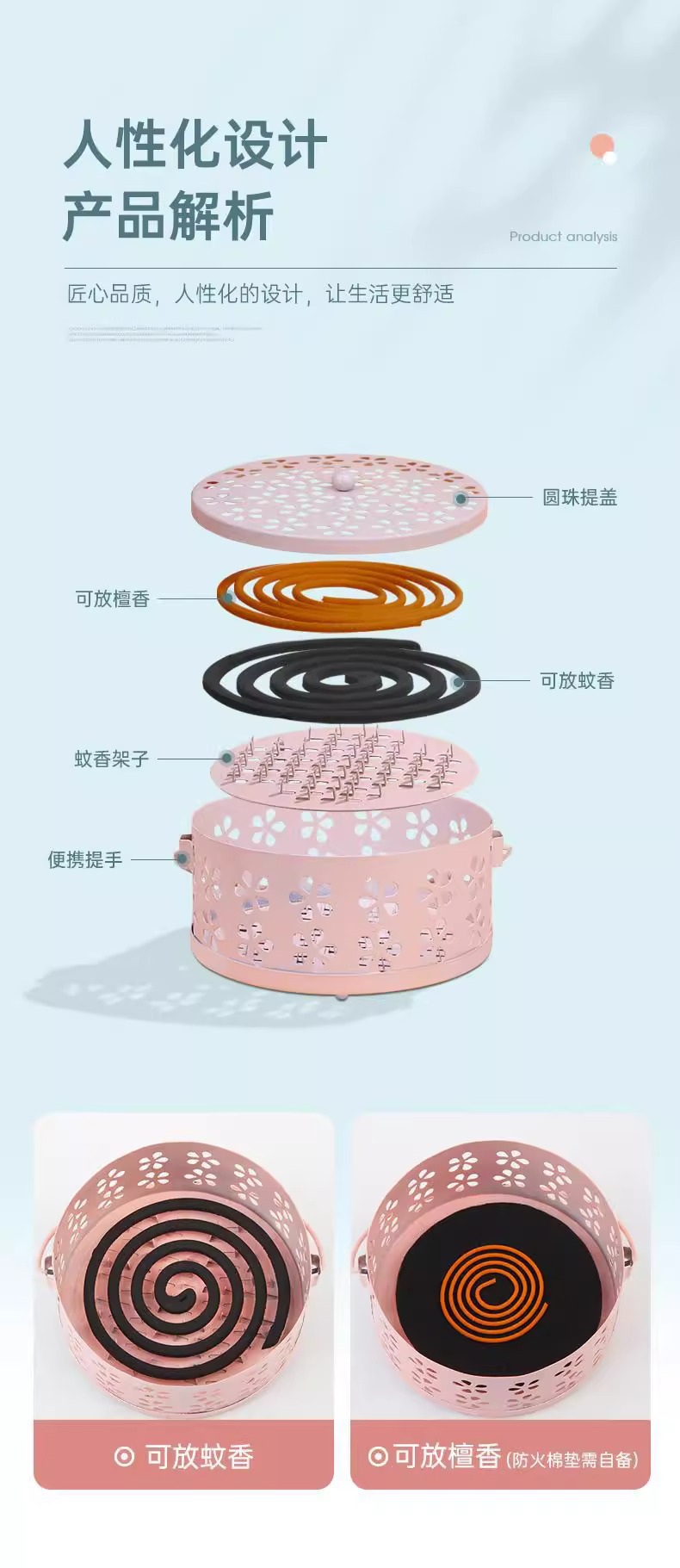 가정용 철제 모기향 홀더, 모기향 홀더, 방화 및 화상 방지, 뚜껑이 있는 대형 크리에이티브 향 박스 향로스토어 가기