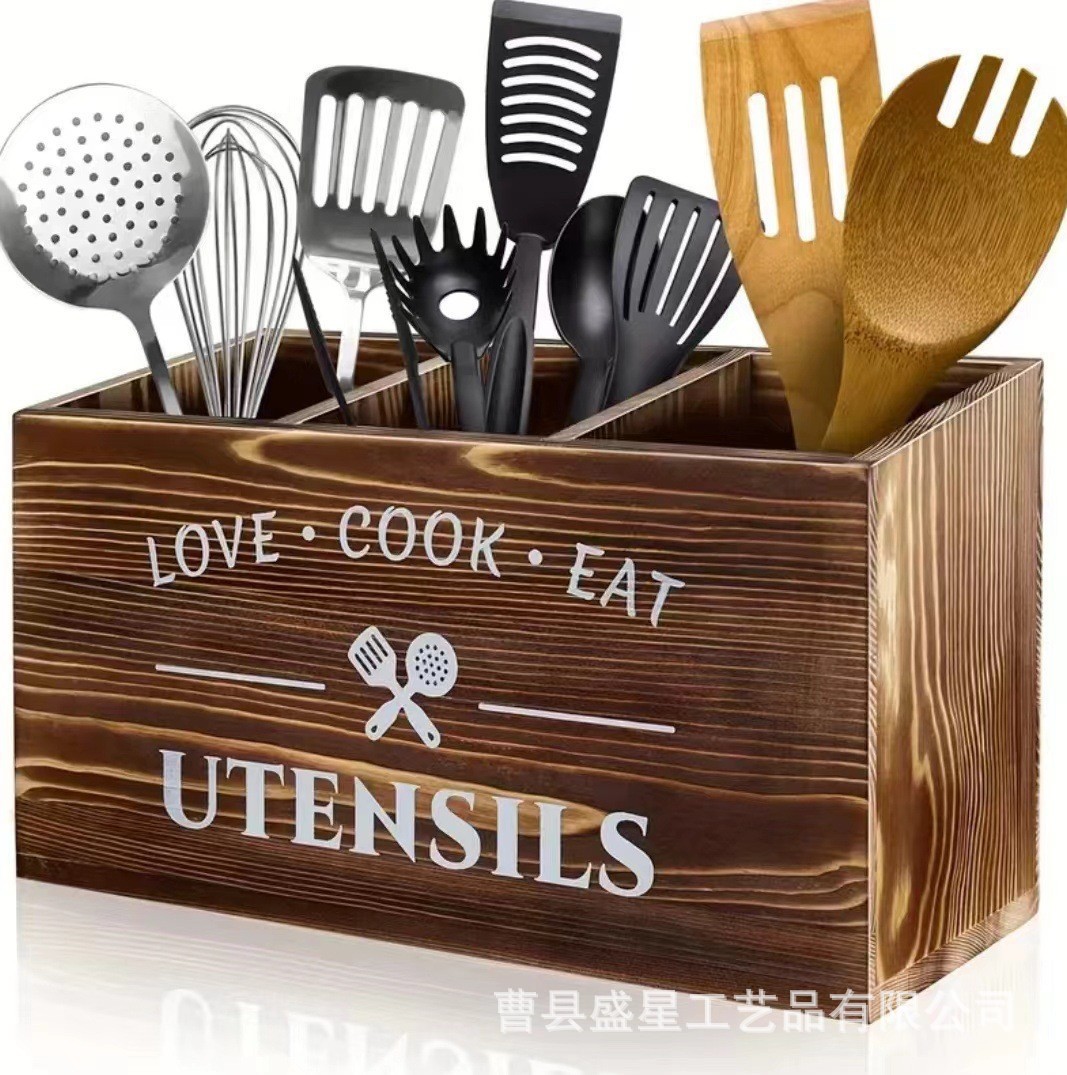 나무 수납함 주방 식기 칼, 포크, 젓가락 분류 조리 도구 주방용품 정리함 칸막이 수납함스토어 가기