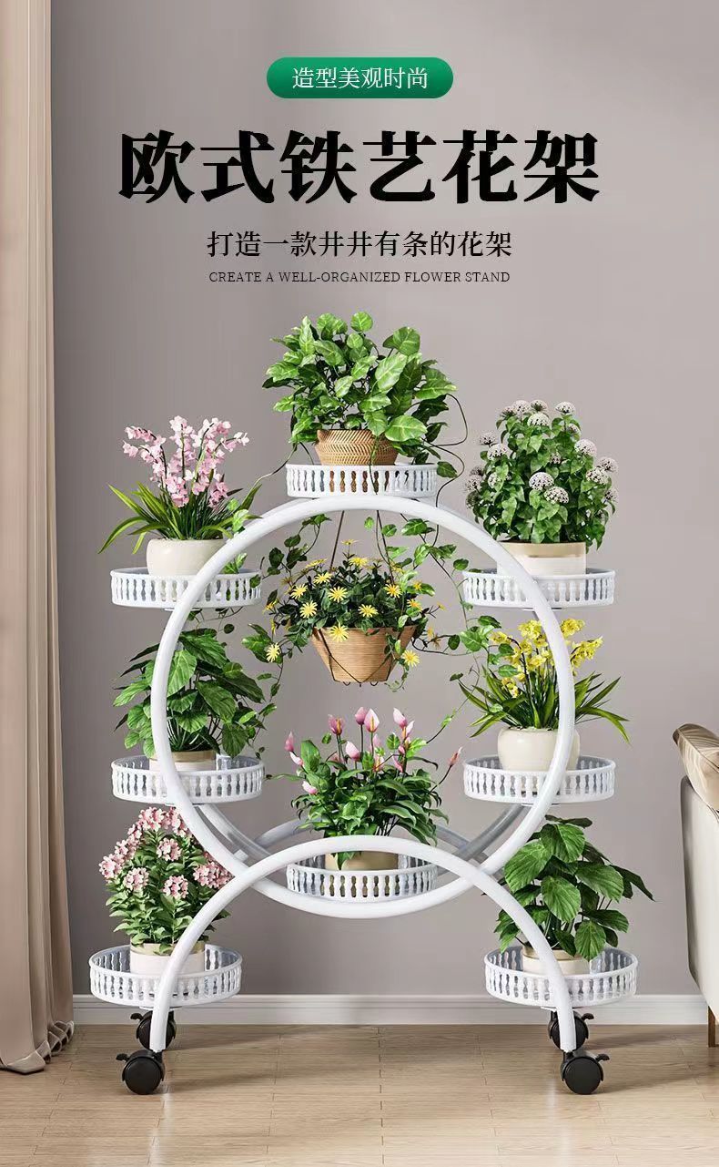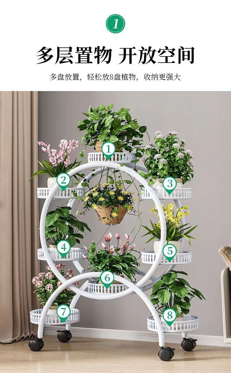 꽃 선반 거실 바닥에 서있는 움직일 수있는 녹색 꽃 냄비 랙 바퀴가 철공 다층 발코니 꽃 랙 가정용 바닥