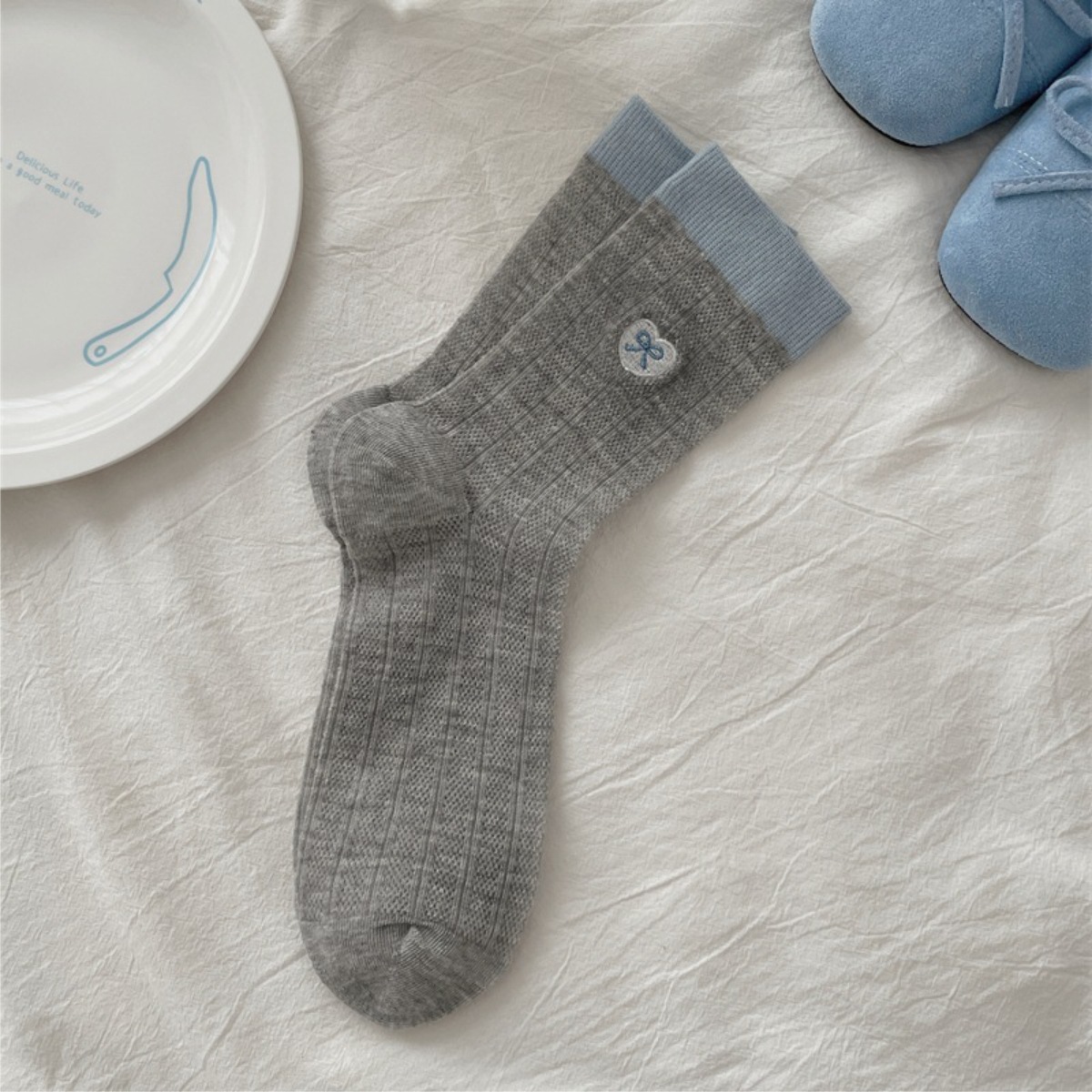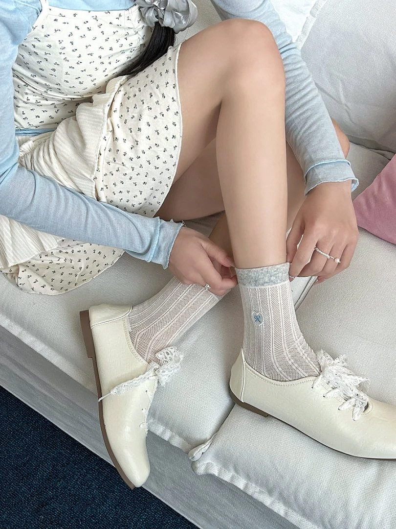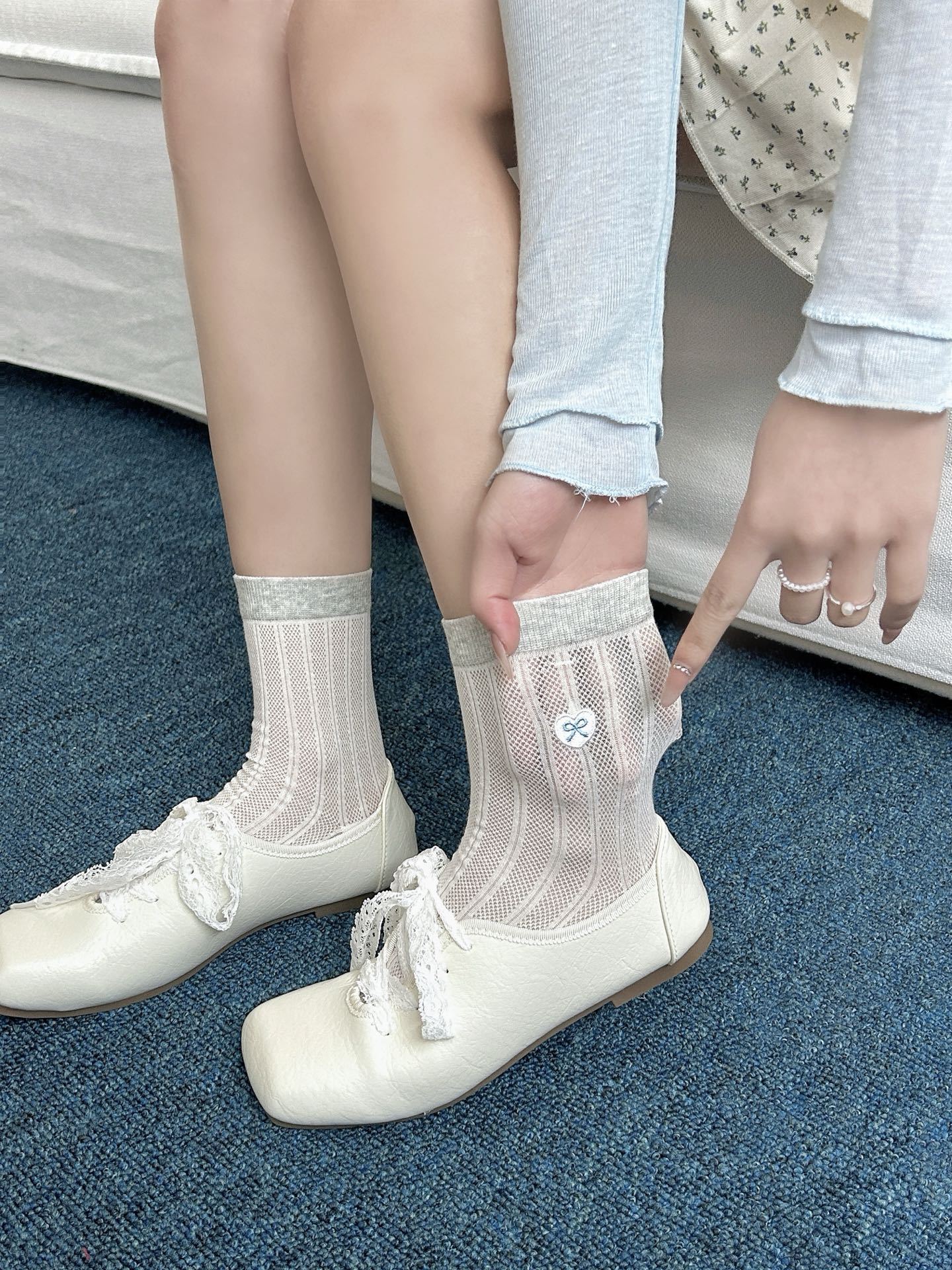 Miu 활 자수 튜브 양말 jk 사랑 메쉬 통기성 여름 얇은 귀여운 숙녀 양말
