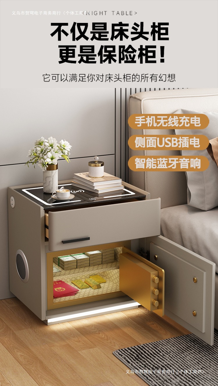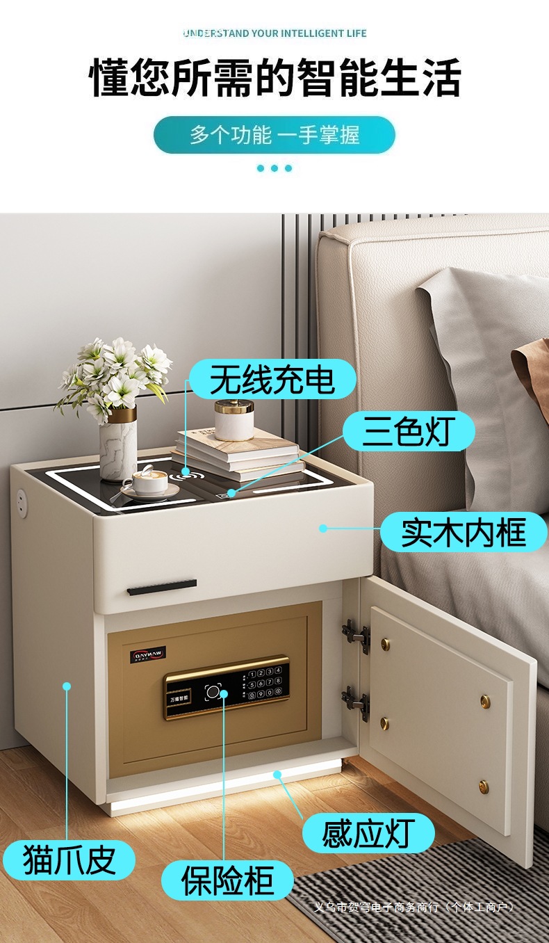 • 오프화이트 [안전함 + 무선충전 + 램프] 원목모델