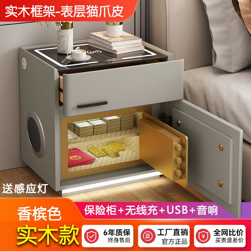 • 샴페인 그레이 [안전함 + 무선충전 + 램프] 원목 모델