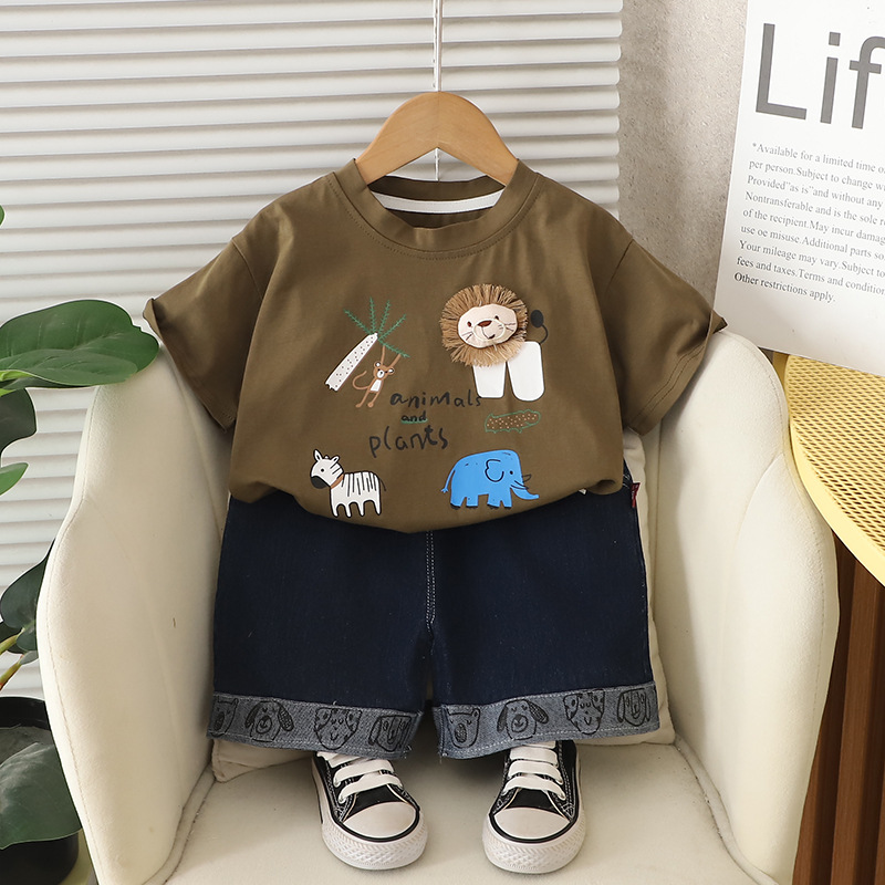 남자들의 여름 세트 2025 새로운 아기 어린이 여름 옷 서양식 남성 아기 잘 생긴 반팔 투피스 유행 옷스토어 가기