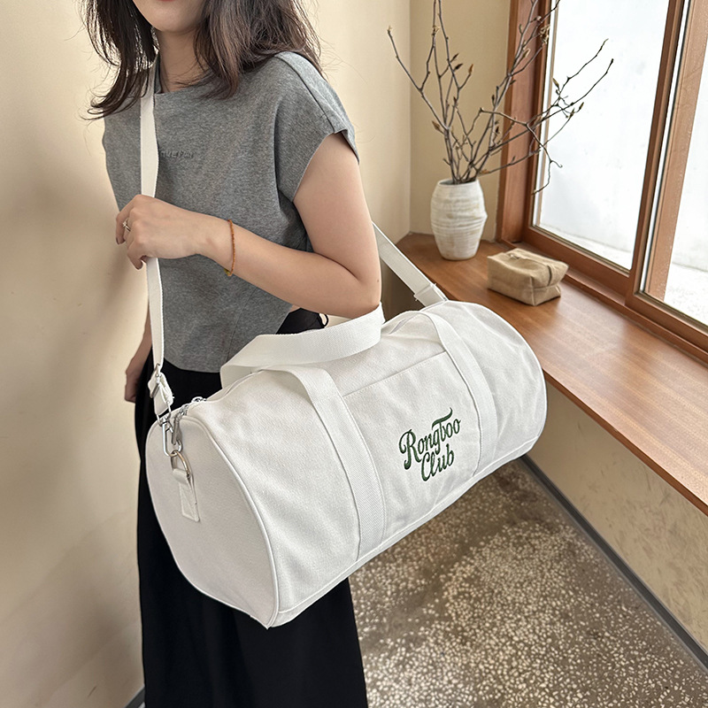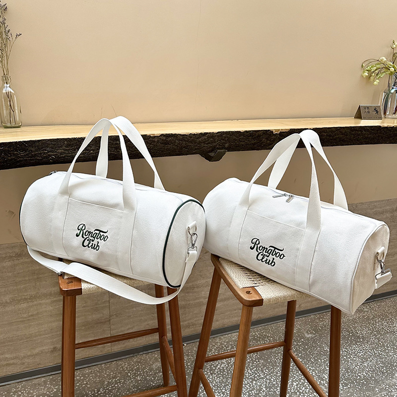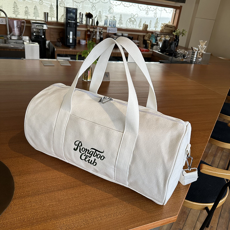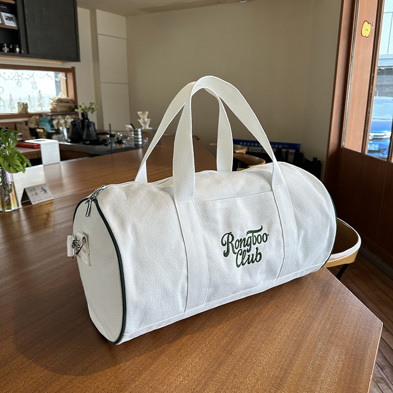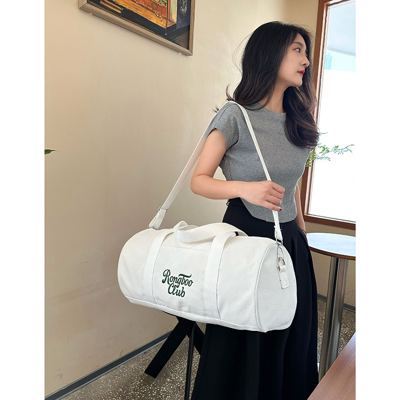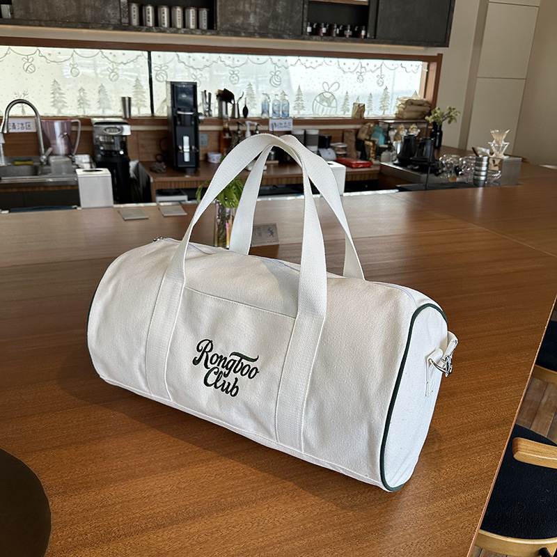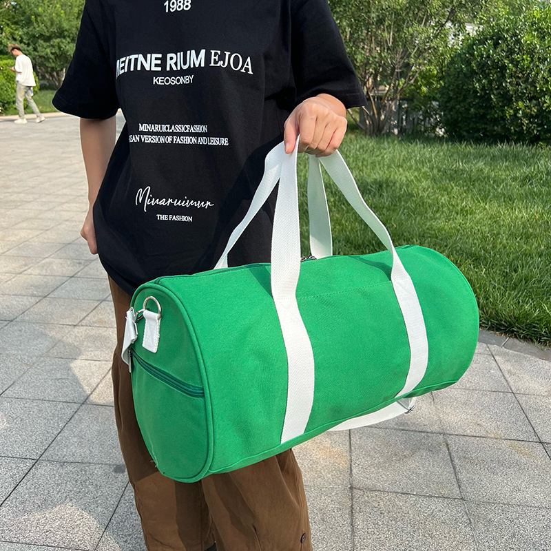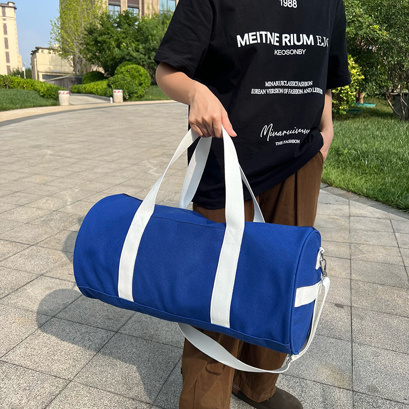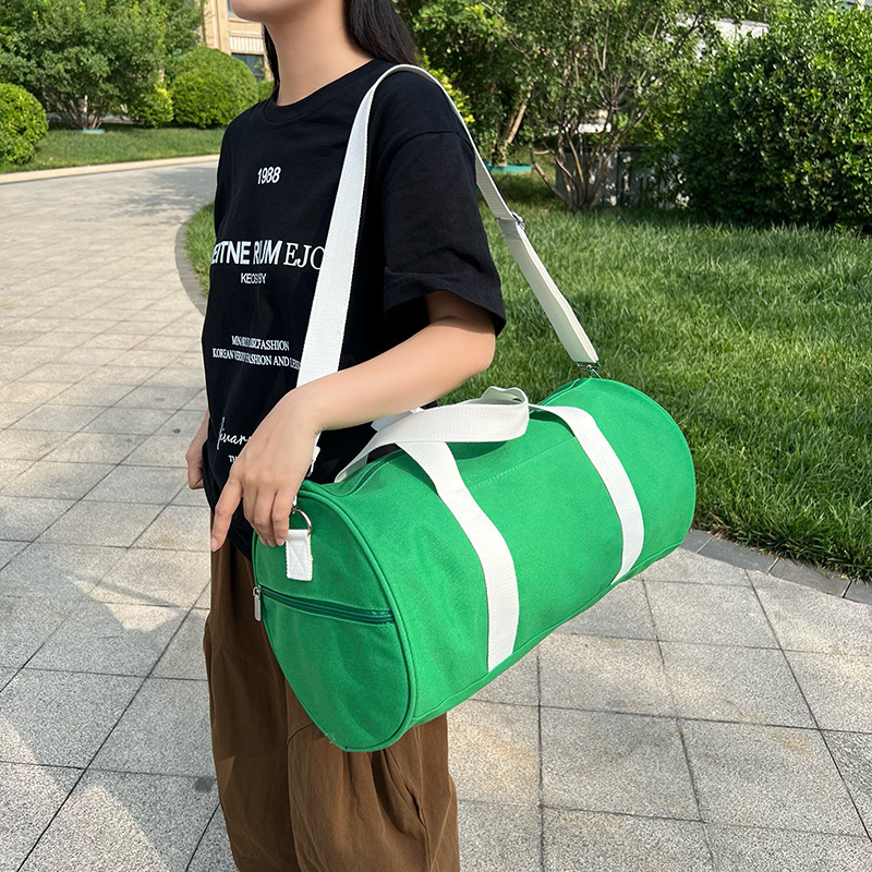 새로운 캔버스 여행 가방 핸드백 야외 실린더 피트니스 가방 편지 대비 색상 단일 어깨 메신저 가방 사용자 정의 로고
