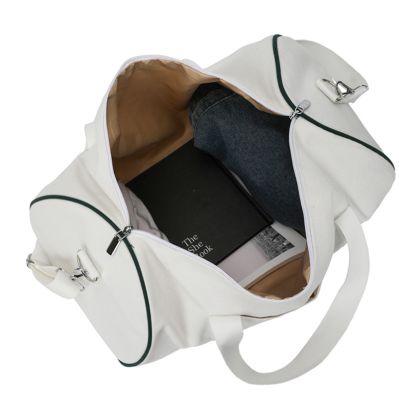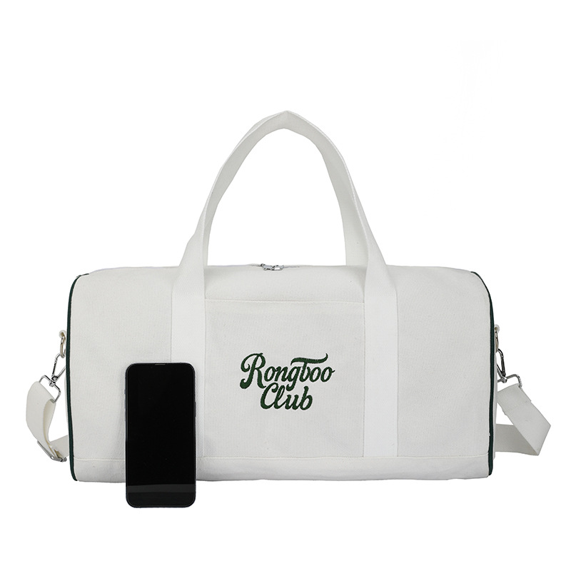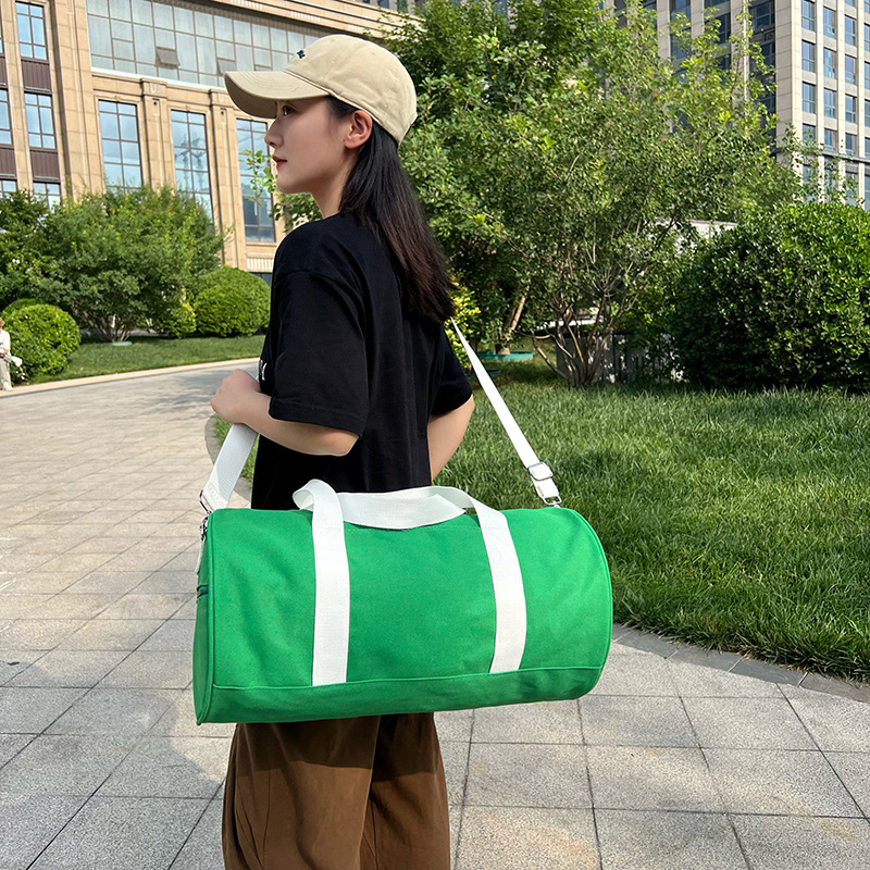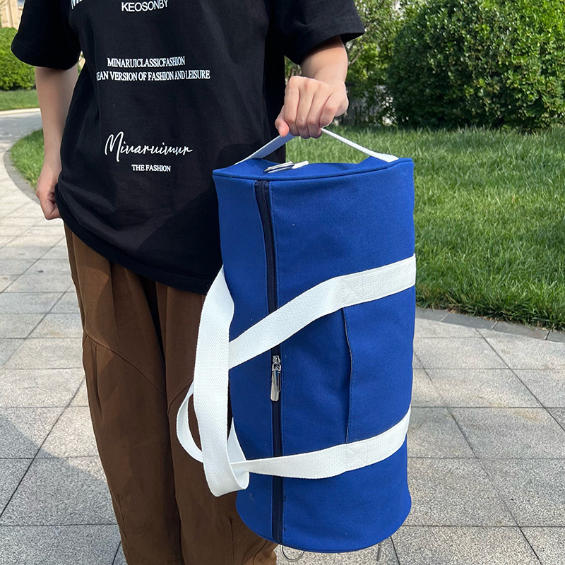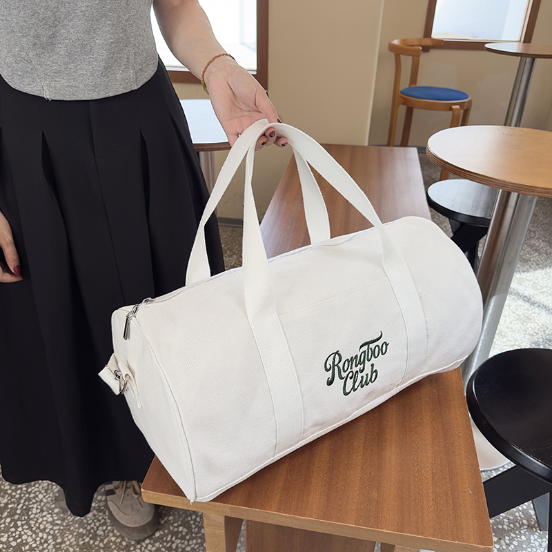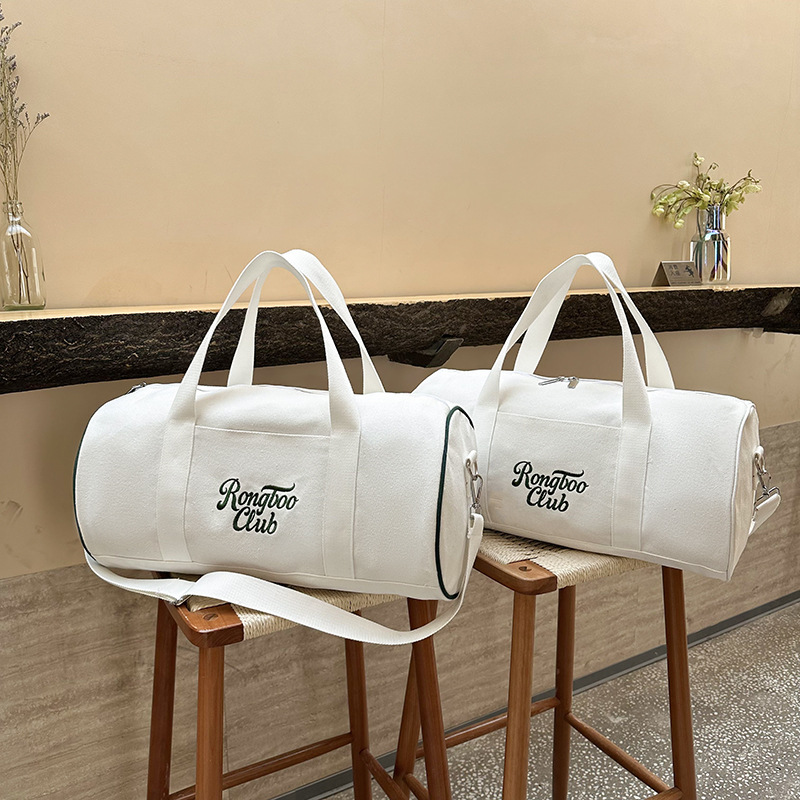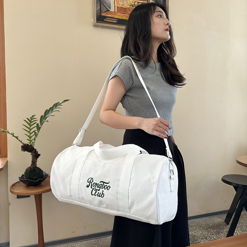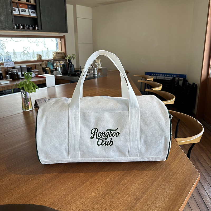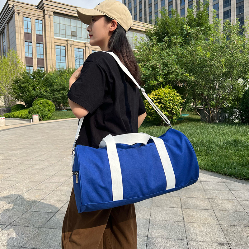새로운 캔버스 여행 가방 핸드백 야외 실린더 피트니스 가방 편지 대비 색상 단일 어깨 메신저 가방 사용자 정의 로고