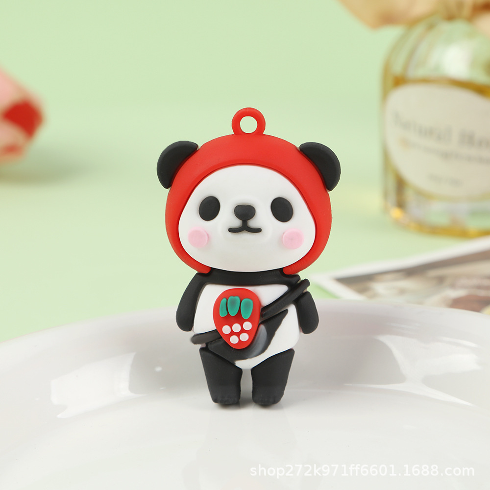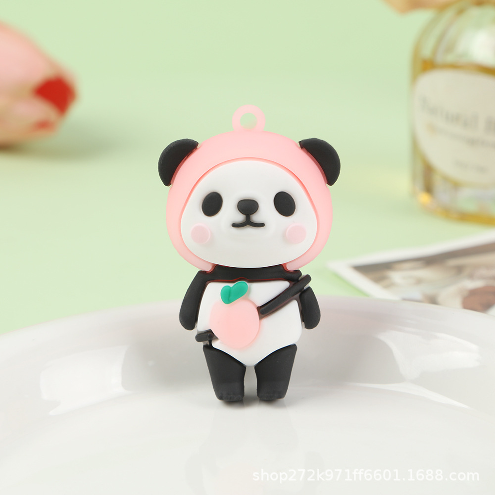 만화 Satchel 팬더 키 체인 귀여운 부드러운 고무 3 차원 펜던트 커플 배낭 교수형 학생 보상 작은 선물