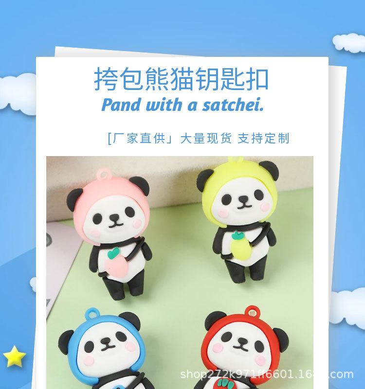 만화 Satchel 팬더 키 체인 귀여운 부드러운 고무 3 차원 펜던트 커플 배낭 교수형 학생 보상 작은 선물스토어 가기
