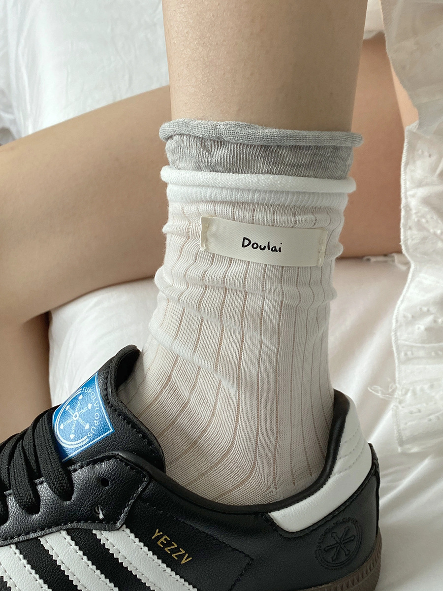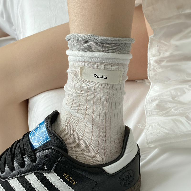 레이지·솔리드 컬러 다용도 세로 줄무늬 중공 배색 컬링 종아리 양말 봄 여름 심플 사이드 천 라벨 양말스토어 가기