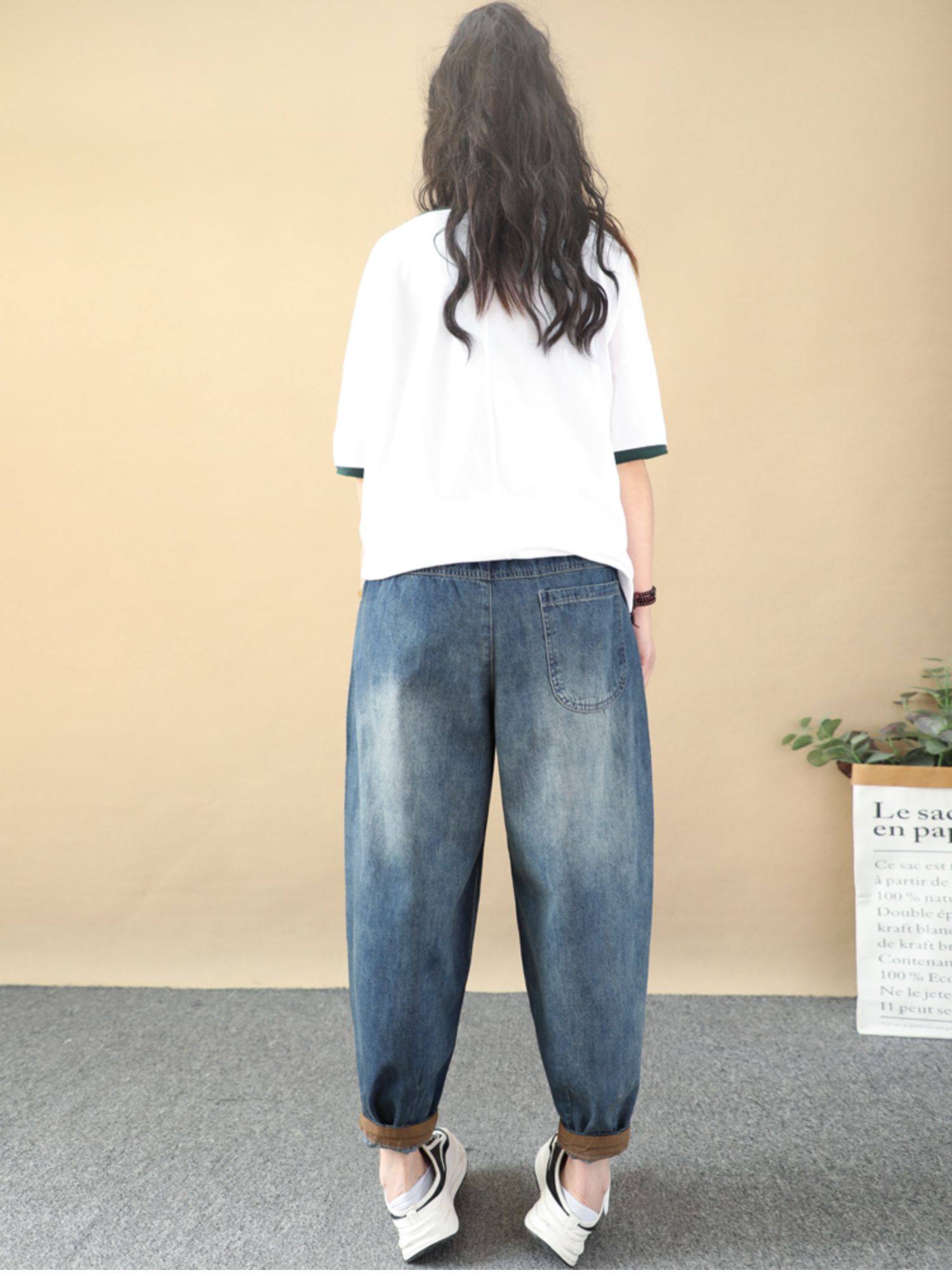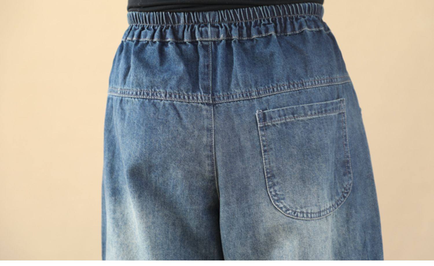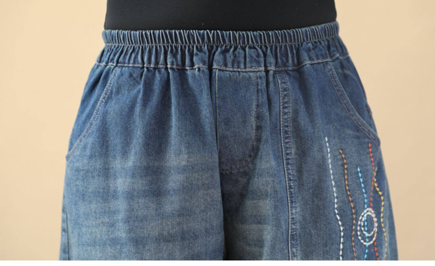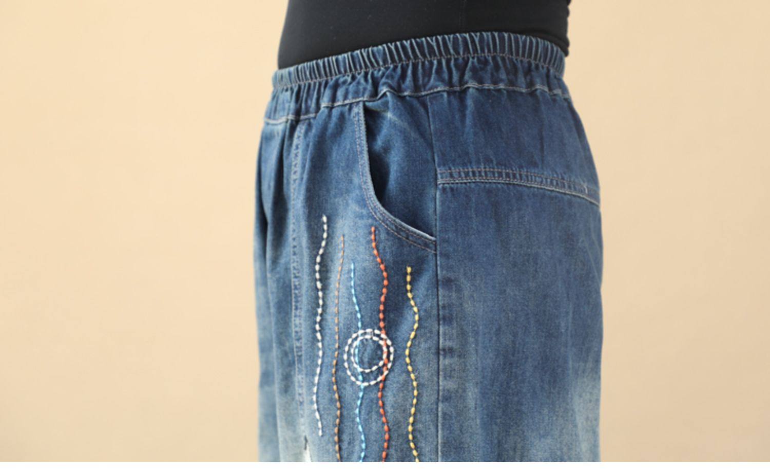 빈티지 만화 올빼미 패드 자수 청바지 여성용 루즈 플러스 사이즈 슬림핏 자른 아빠 하렘 바지스토어 가기