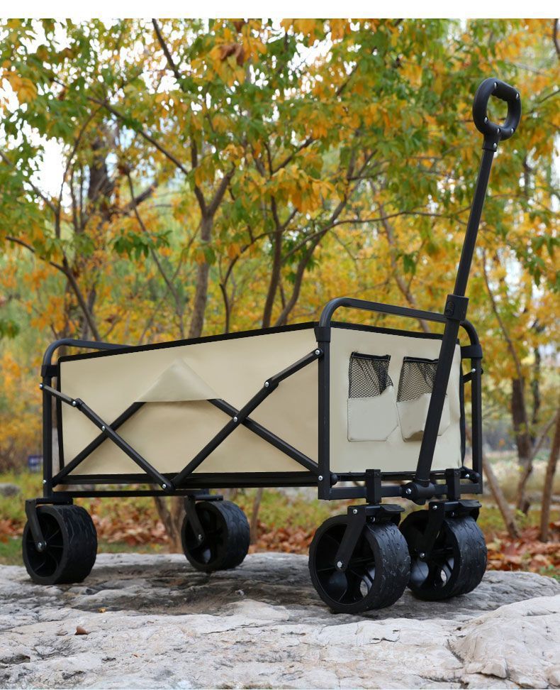 • [카키] 두꺼운 탄소강 프레임 탈부착 가능한 옥스포드 천 - [캠핑 스타일] 10inch 전지형 휠 더블 브레이크/티핑 버킷