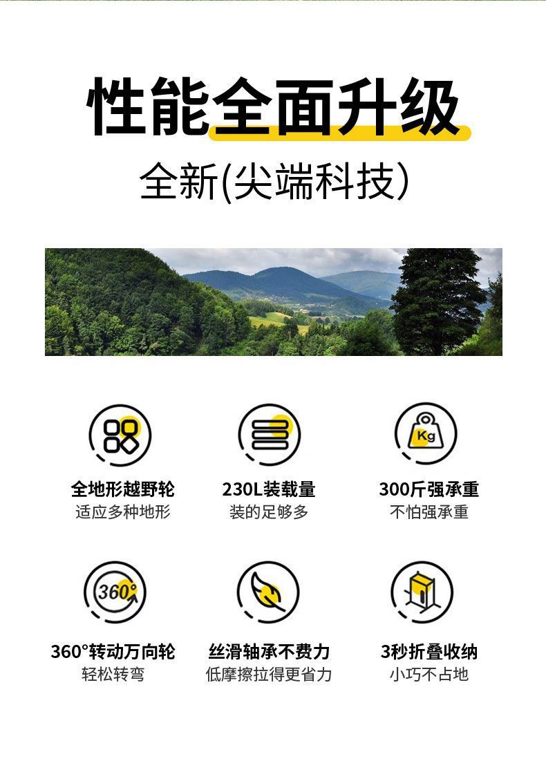 • [블랙] 두꺼운 탄소강 프레임, 탈부착 가능한 옥스포드 천 - [캠핑 모델] 10inch 전지형 휠 더블 브레이크/티핑 버킷