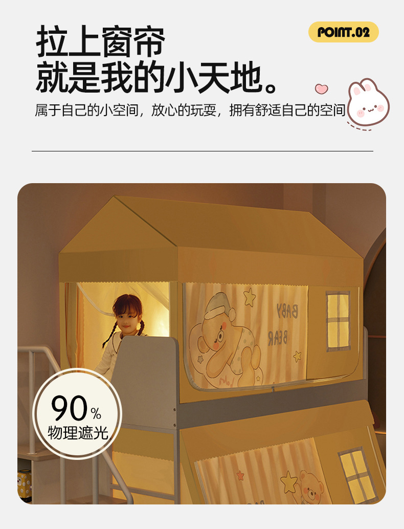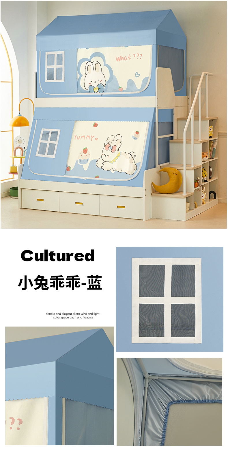 • 작은 집 모델 135cm*190cm*80-100cm(이층 침대 이중 문) 침대 커튼 포함