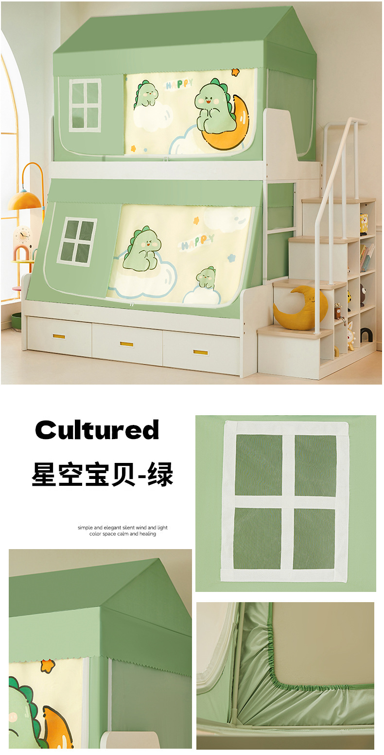 • 작은 집 모델 120cm*190cm*80-100cm(이층 침대 이중 문) 침대 커튼 포함