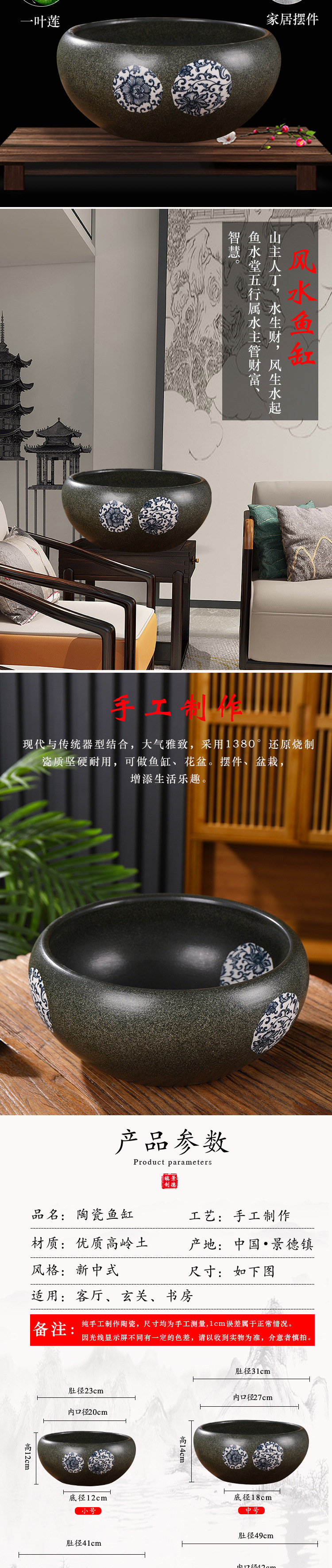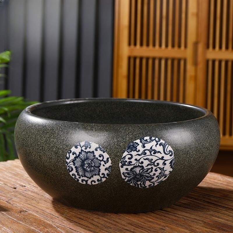 구멍이 없는 경덕진 고온 세라믹 가정용 고대 금붕어 수조 연꽃 냄비 수련 그릇 연꽃 거북이 수조 실내 및 실외