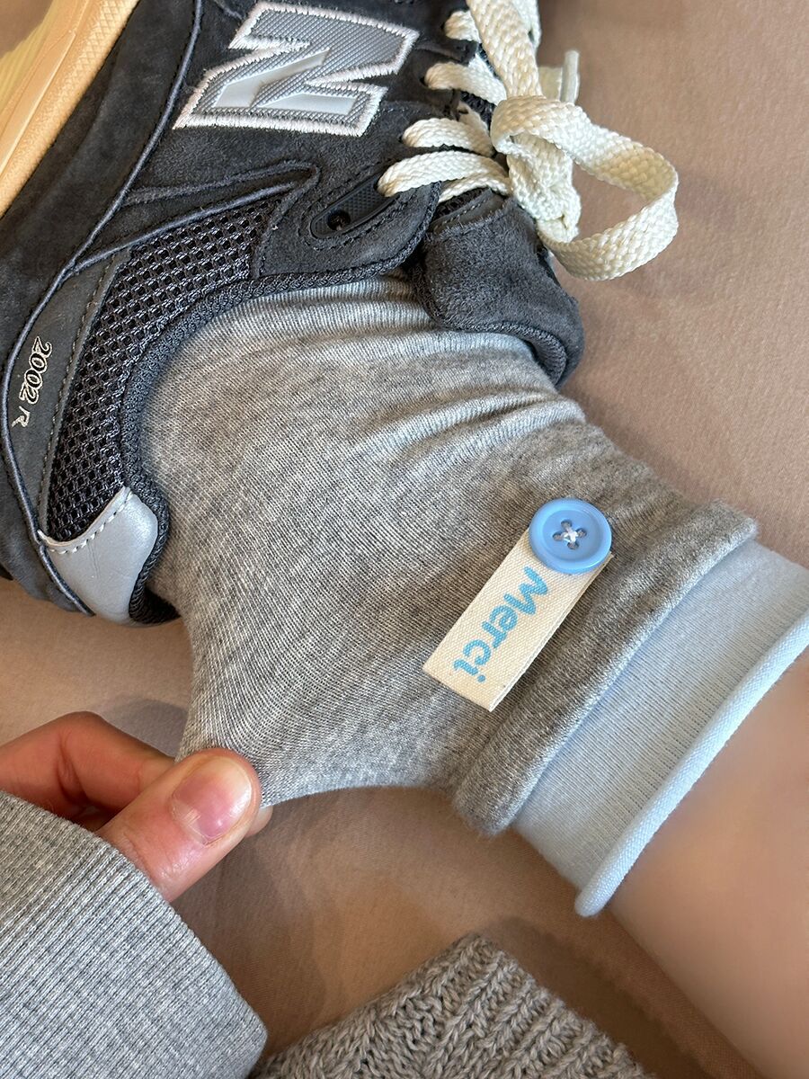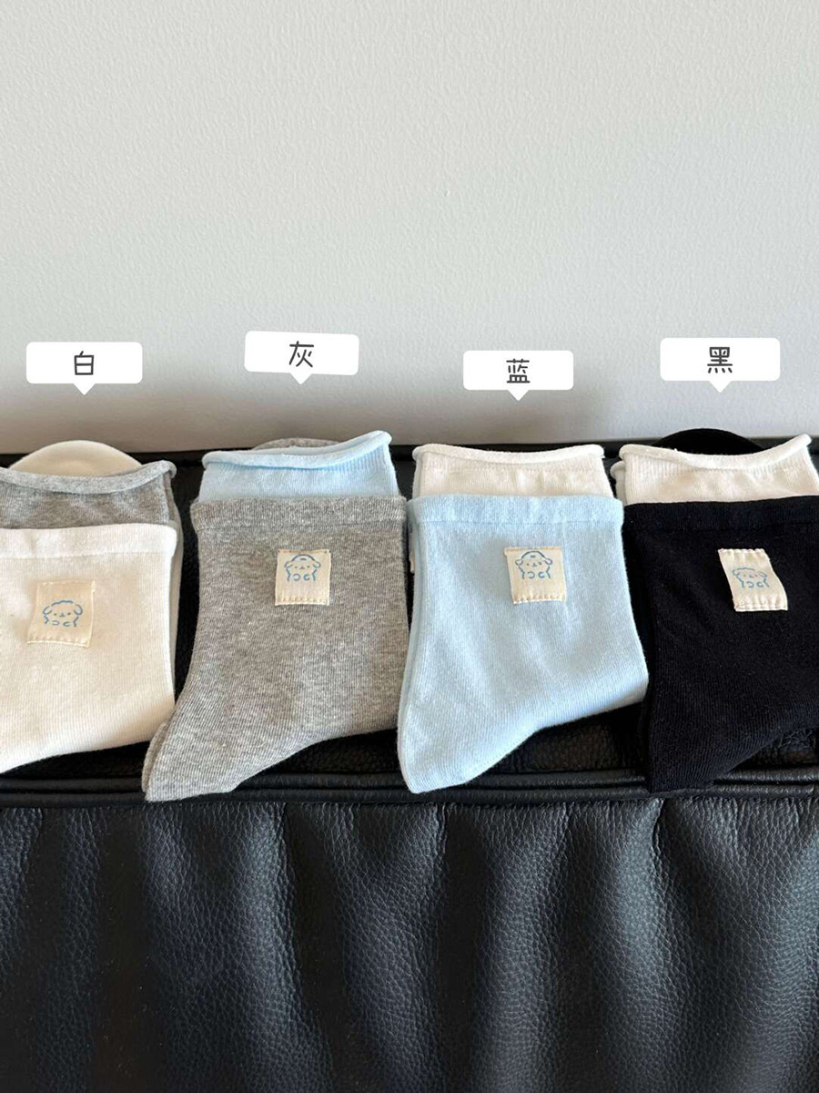 귀여운 ab 버튼 천 라벨 더블 나사 컬링 미드 튜브 봄 여름 회색 및 파란색 천 라벨 만화 강아지 양말스토어 가기