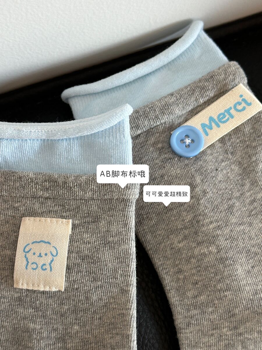 귀여운 ab 버튼 천 라벨 더블 나사 컬링 미드 튜브 봄 여름 회색 및 파란색 천 라벨 만화 강아지 양말