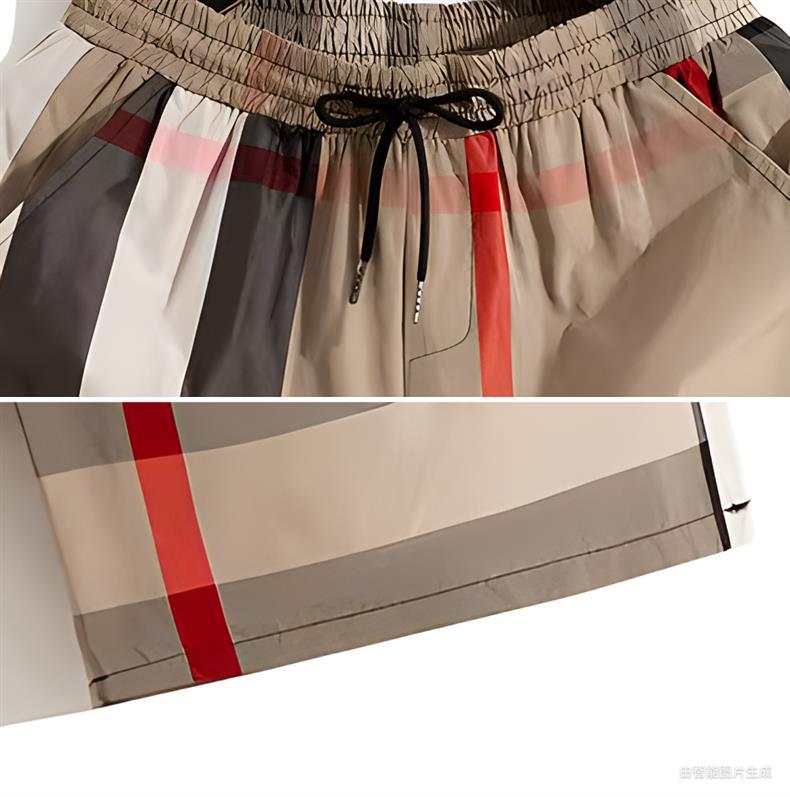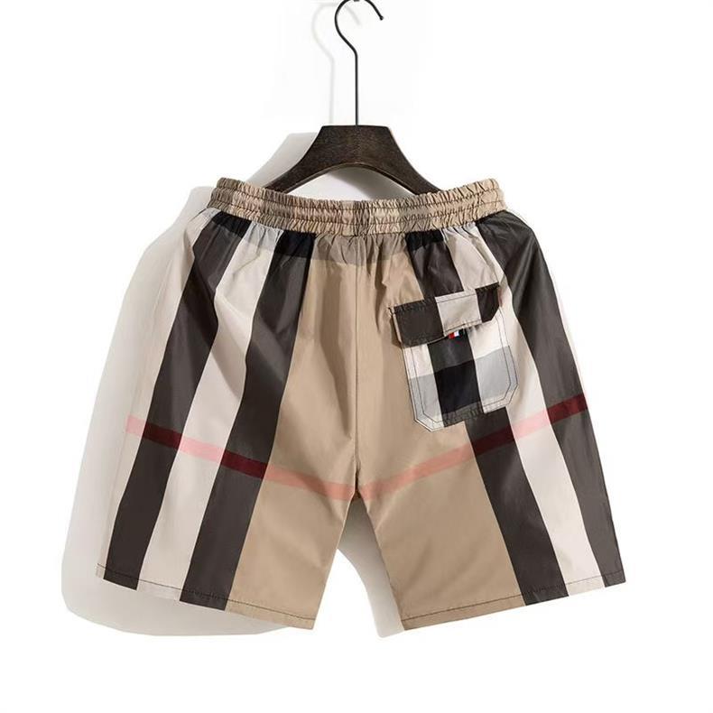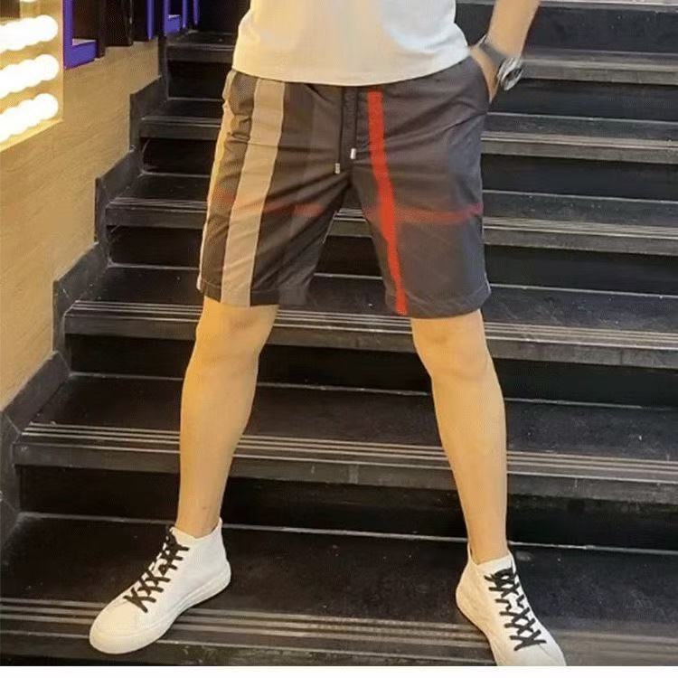 인쇄 된 격자 무늬 반바지 남성용 한국식 슬림핏 스트레이트 컷 캐주얼 바지 여름 얇은 아이스 실크 비치 스포츠 바지