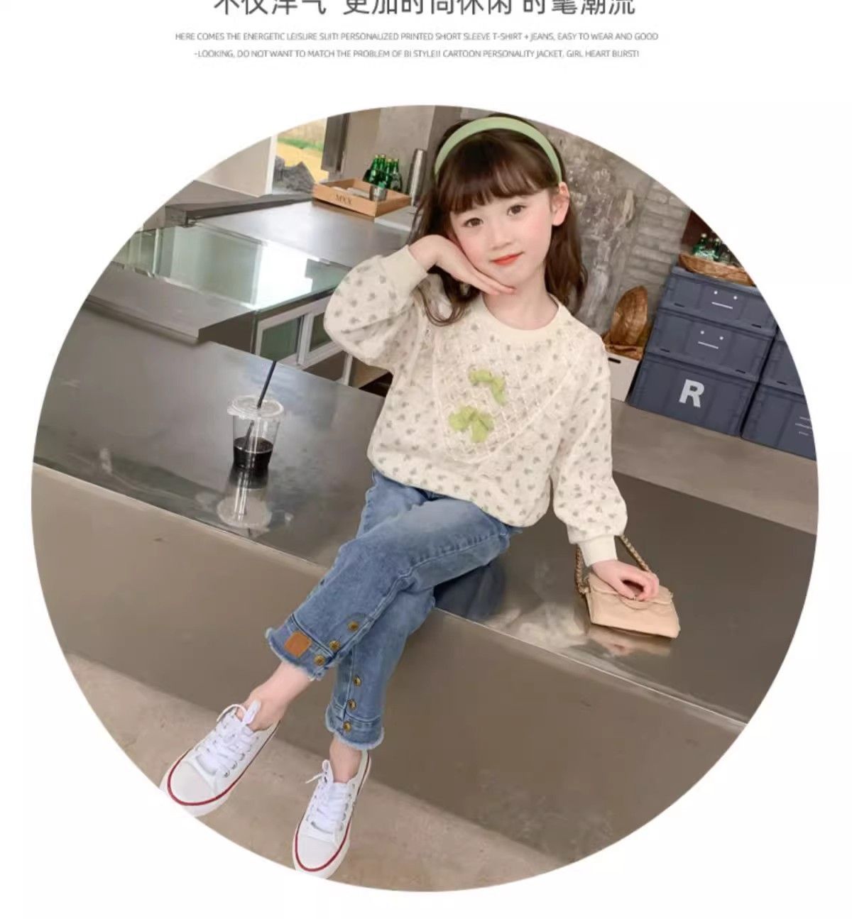 여아 스웨트 셔츠 새로운 스타일 여아 봄, 가을 긴팔 꽃무늬 리본 레이스 중대형 아동용 귀여운 상의스토어 가기