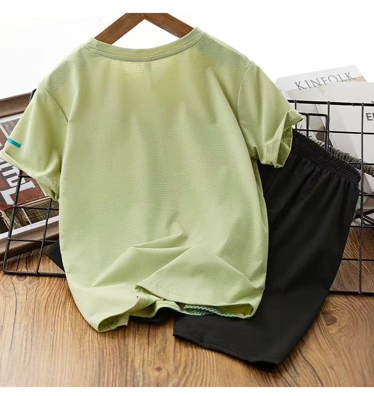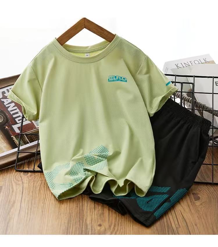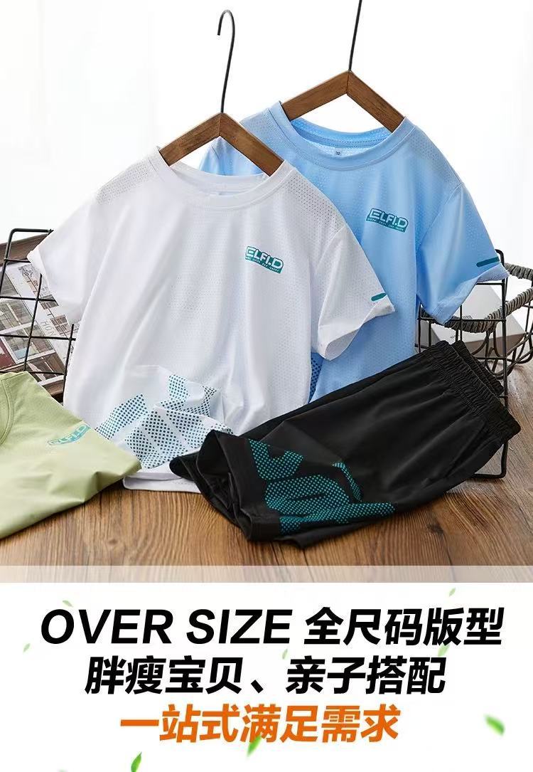 아동용 반팔 스포츠웨어 세트, 남아 여아 여름용 얇은 풀오버, 아동복 투피스 세트, 중소형 아동용스토어 가기