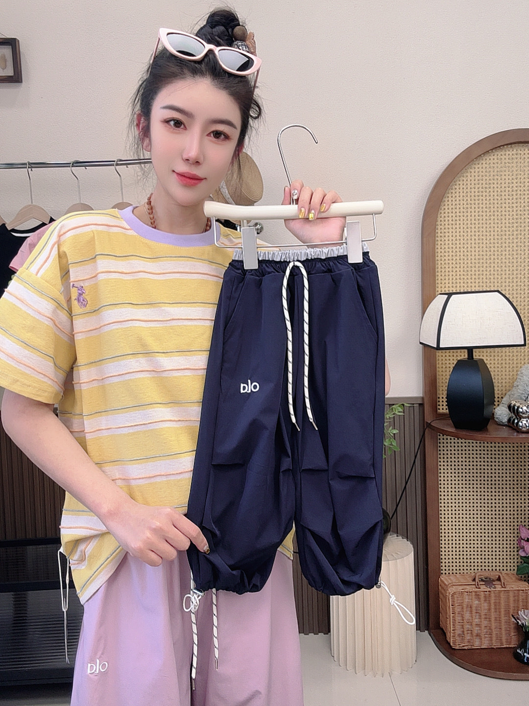 • 드로스트링팬츠-보라색