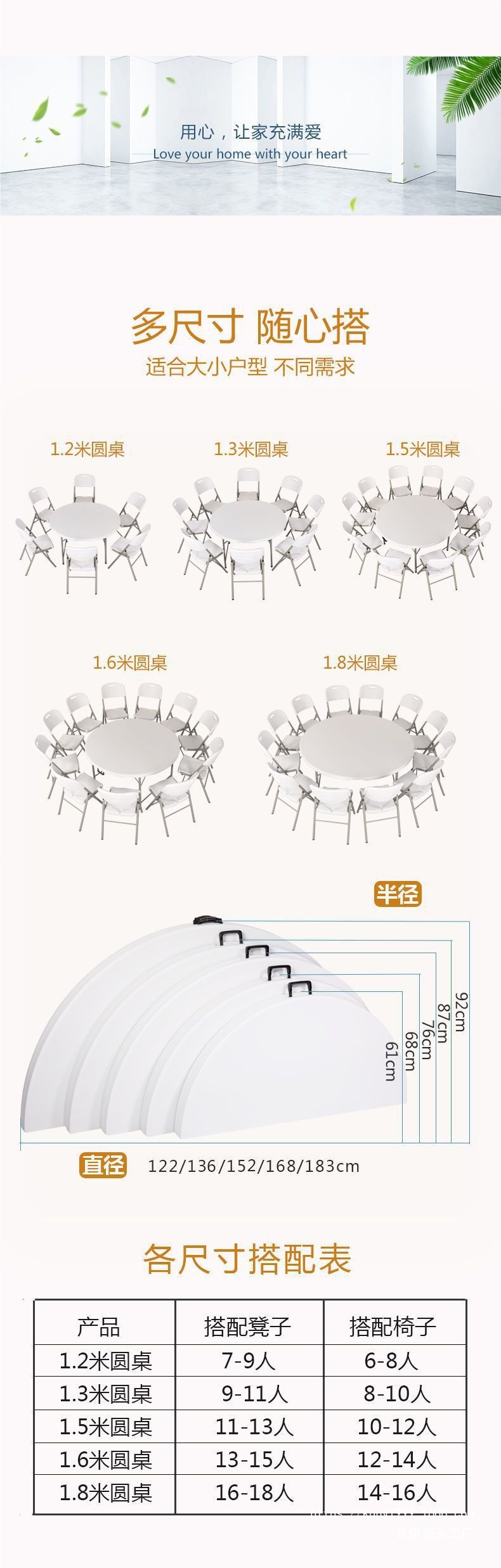 • 1.36m +10 작은 원형 스툴(기본 흰색)