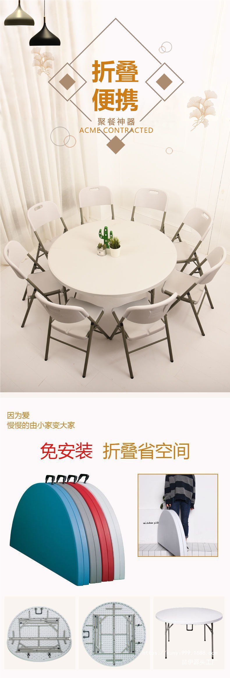 접이식 원형 테이블 가정용 간단한 대형 원형 탁상 접이식 식탁 식탁 야외 간단한 식탁과 의자스토어 가기